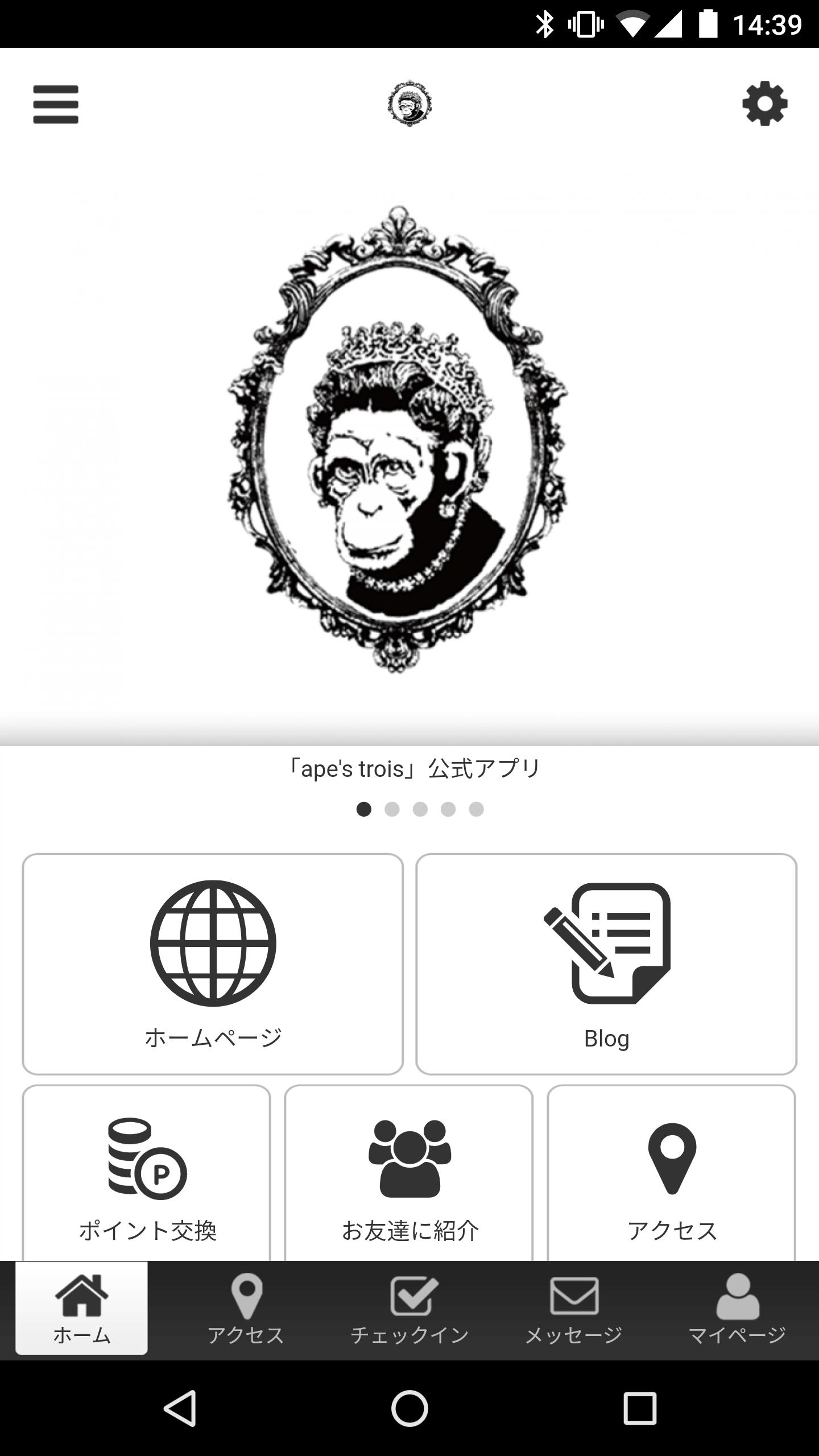 このアプリでは、エイプストロワの最新情報の受け取りや便利な機能を使う事ができます。