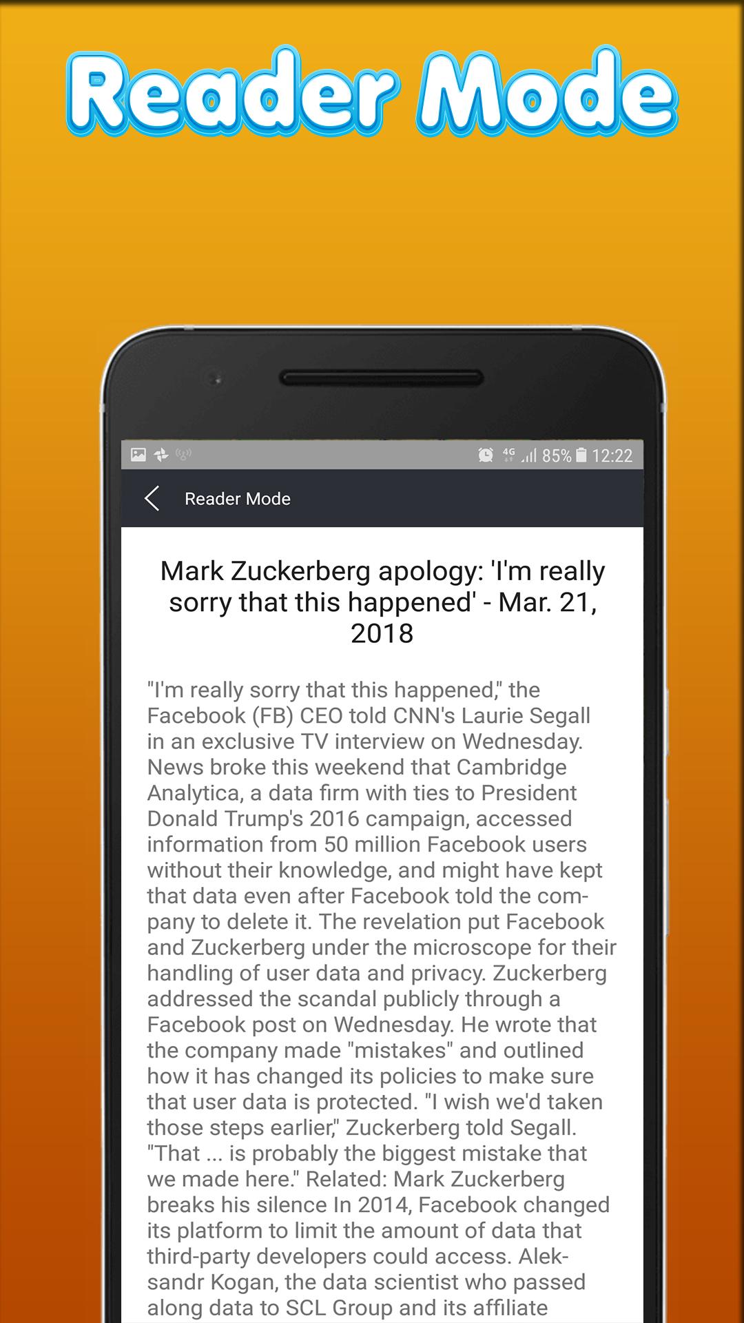 Browser GO Mini is a free web browser for android devices with secure browser, fast download, reader mode, file manager, data saving, ad-block functionality, and helps you access music, video, cricket,nfl schedule, football channel and information with smooth experience.