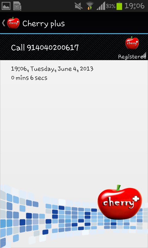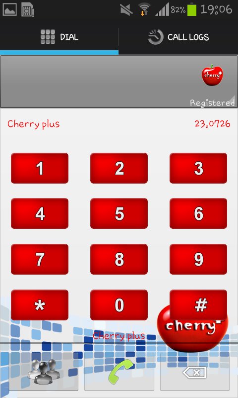 CherryPlus is the Mobile Dialer that allows to make VoIP calls from any of the android devices and it uses 3G/Edge/Wi-Fi Internet connectivity. It is developed based on the requirements of VoIP Providers business needs.