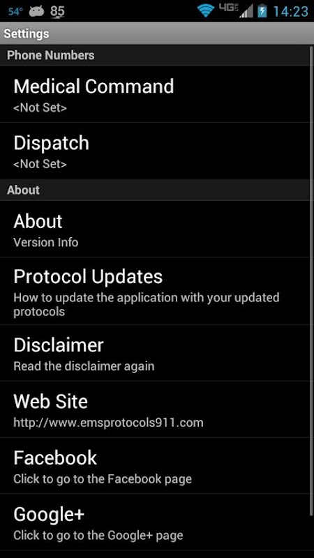 You are able to enter 2 phone numbers into the application. These numbers are meant to be for your medical command and dispatch numbers. You are able to call these numbers from inside this application.