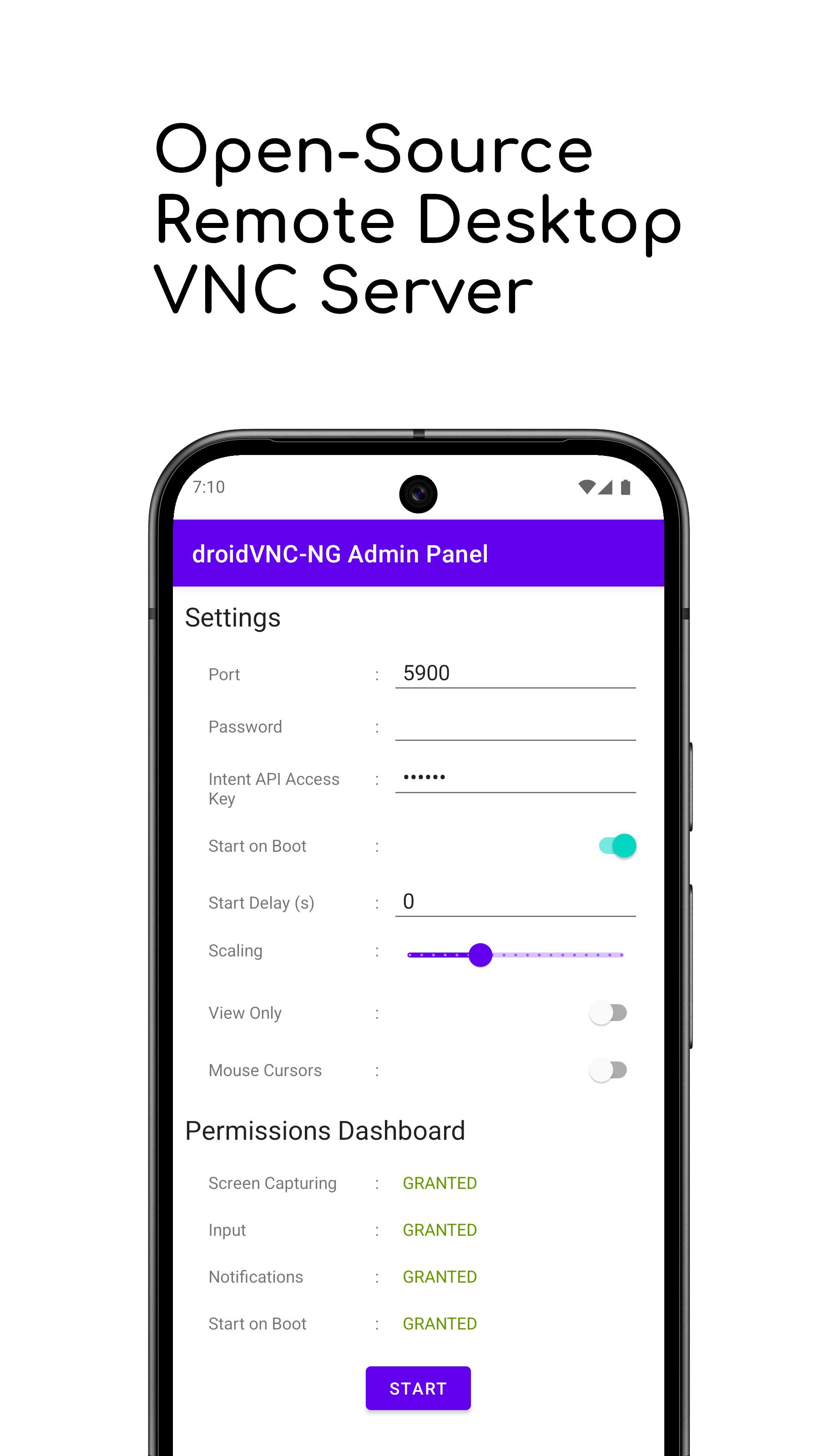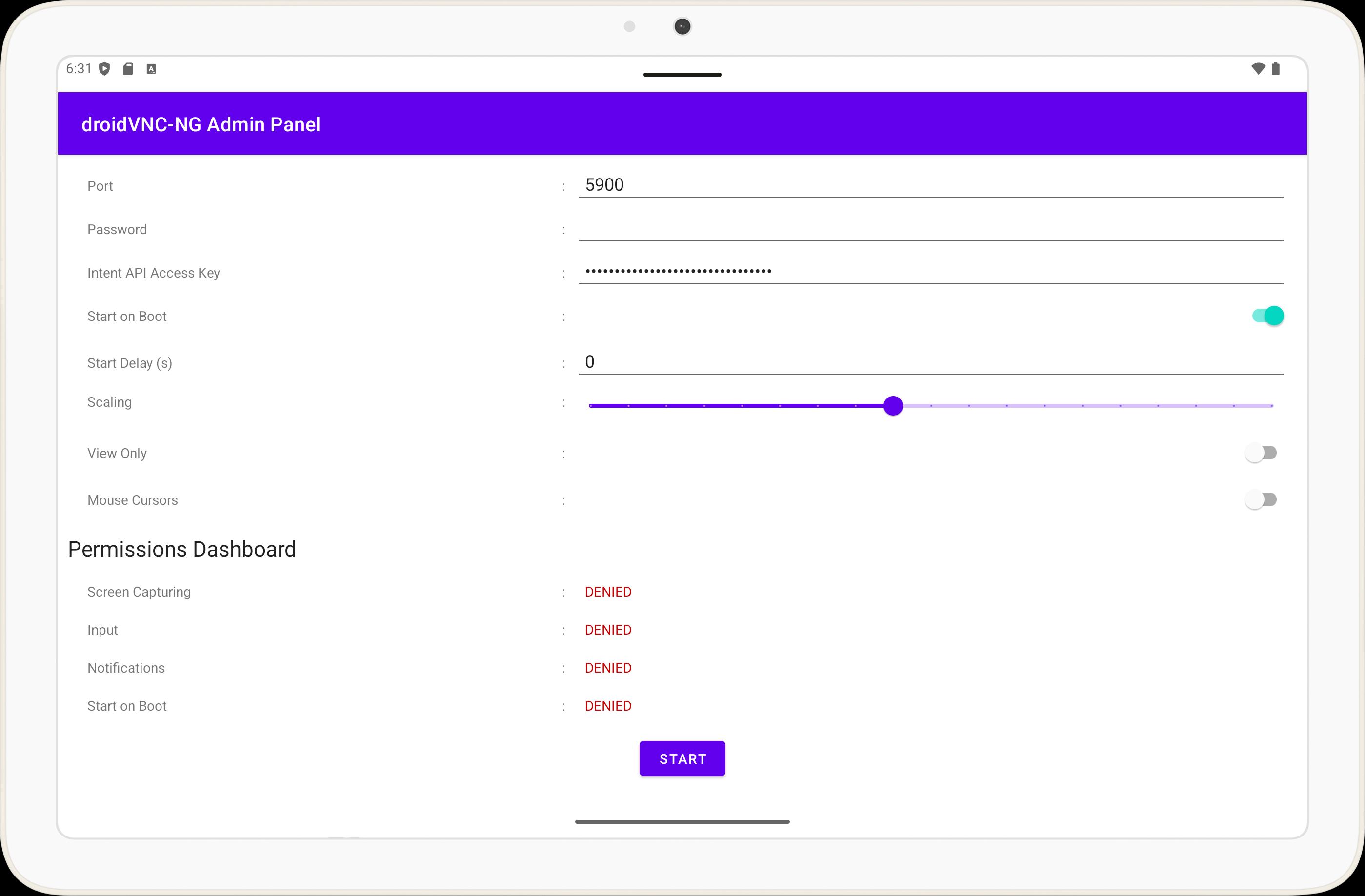 droidVNC-NG एक ओपन-सोर्स Android VNC सर्वर ऐप है जिसके लिए रूट एक्सेस की आवश्यकता नहीं होती है। यह निम्नलिखित फीचर सेट के साथ आता है:
