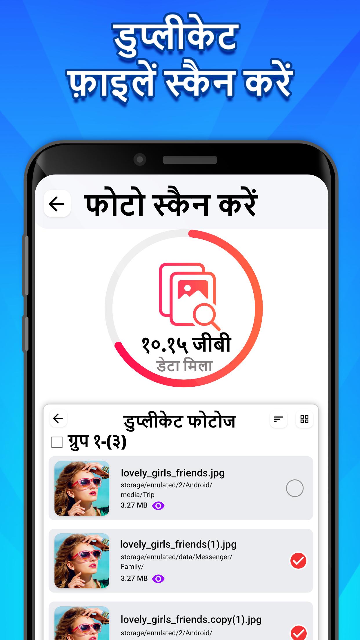 स्टोरेज स्पेस बढ़ाएँ: डुप्लिकेट फ़ाइलें हटाएँ और तुरंत अपने डिवाइस पर मूल्यवान स्टोरेज स्पेस खाली करें।