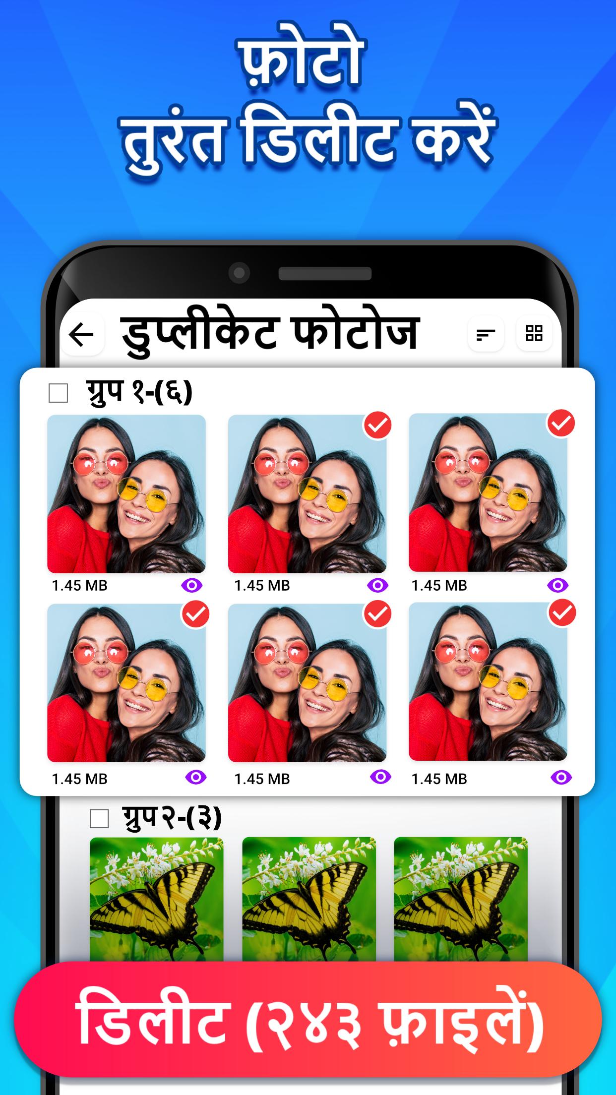डुप्लिकेट फोटो रिमूवर ऐप की शानदार सुविधाओं का आनंद लें और देखें कि यह आपके डिजिटल जीवन को कैसे आसान बनाता है। डुप्लिकेट क्लीनर आपके स्टोरेज को साफ़ करता है ताकि आपका डिवाइस बेहतर प्रदर्शन कर सके। डुप्लिकेट फ़ाइल रिमूवर ऐप के साथ, आप अधिक व्यवस्थित और कुशल डिजिटल अनुभव का आनंद ले सकते हैं।