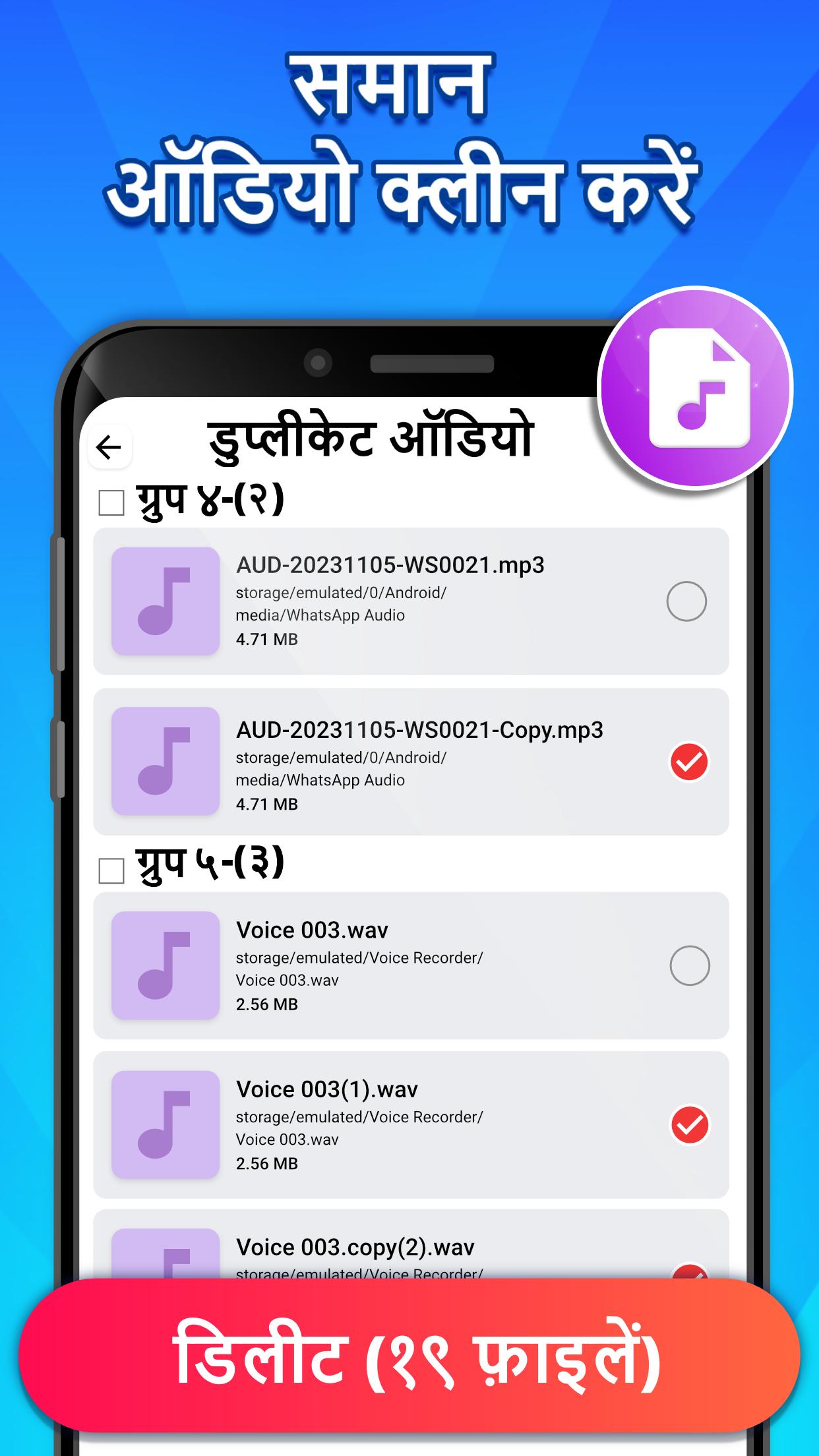 डुप्लीकेट फाइल रिमूवर! समान फ़ोटो, फ़ाइल, ऑडियो और वीडियो ढूंढें और डिलीट करें!