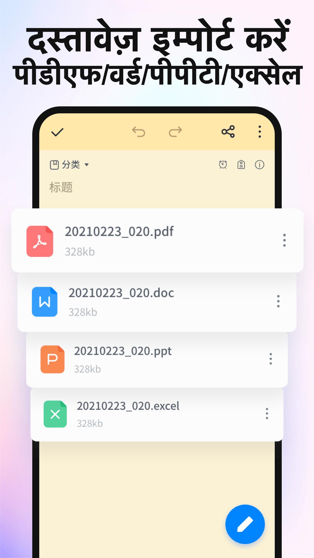 - 📙 टेक्स्ट, फोटो, ऑडियो और पीडीएफ/वर्ड/एक्सेल/पीपीटी फाइलों के साथ नोट्स लें