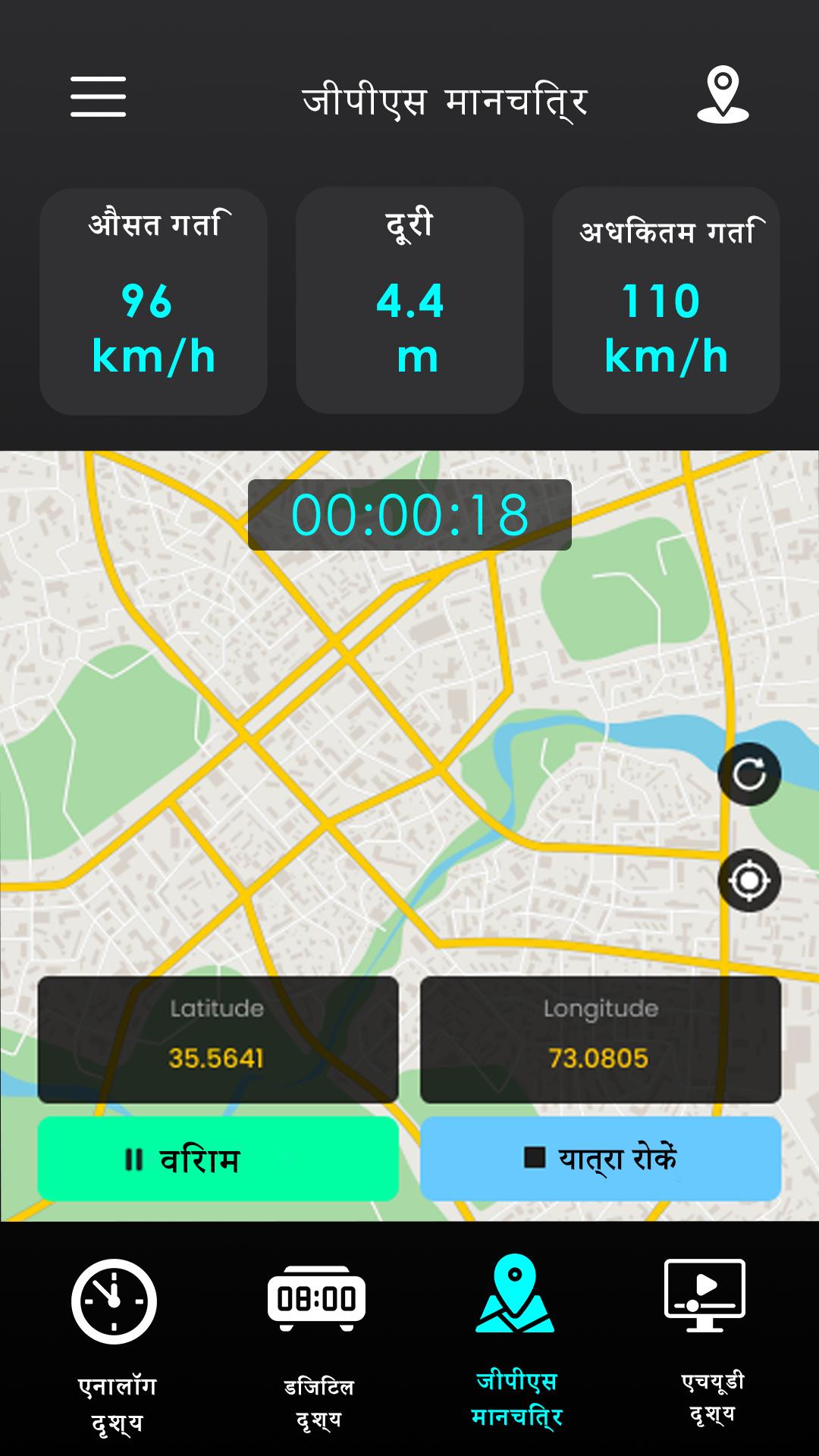 वास्तविक समय एमपीएच ट्रैकर: हेड-अप डिस्प्ले (एचयूडी) में सटीक मापने और मील प्रति घंटे या किलोमीटर/घंटा में आपकी गति प्रदर्शित करने के लिए जीपीएस स्पेडोमीटर है।