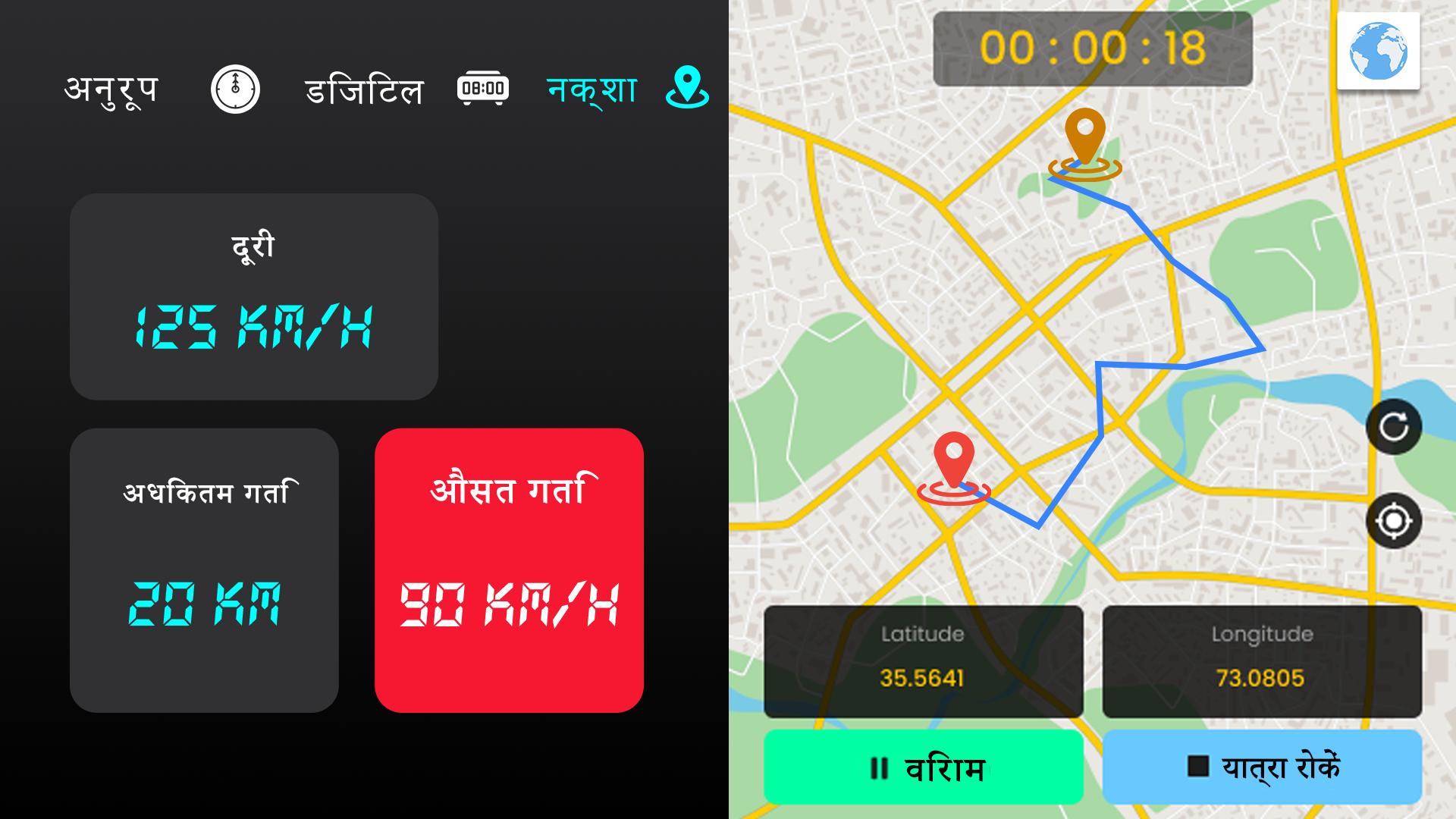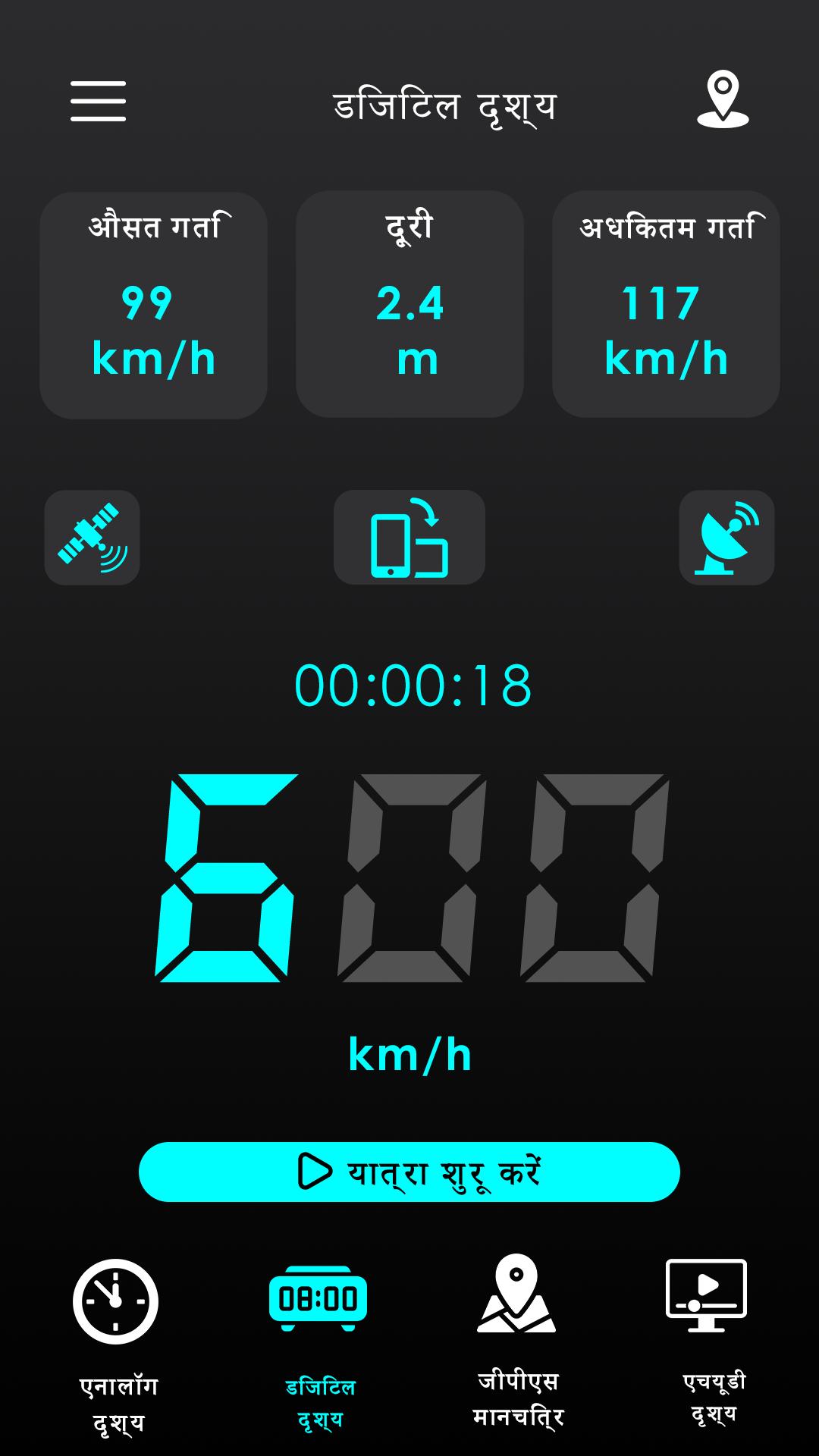 दूरी: डिजिटल स्पीडोमीटर ऐप से अपनी दूरी रिकॉर्ड करें।