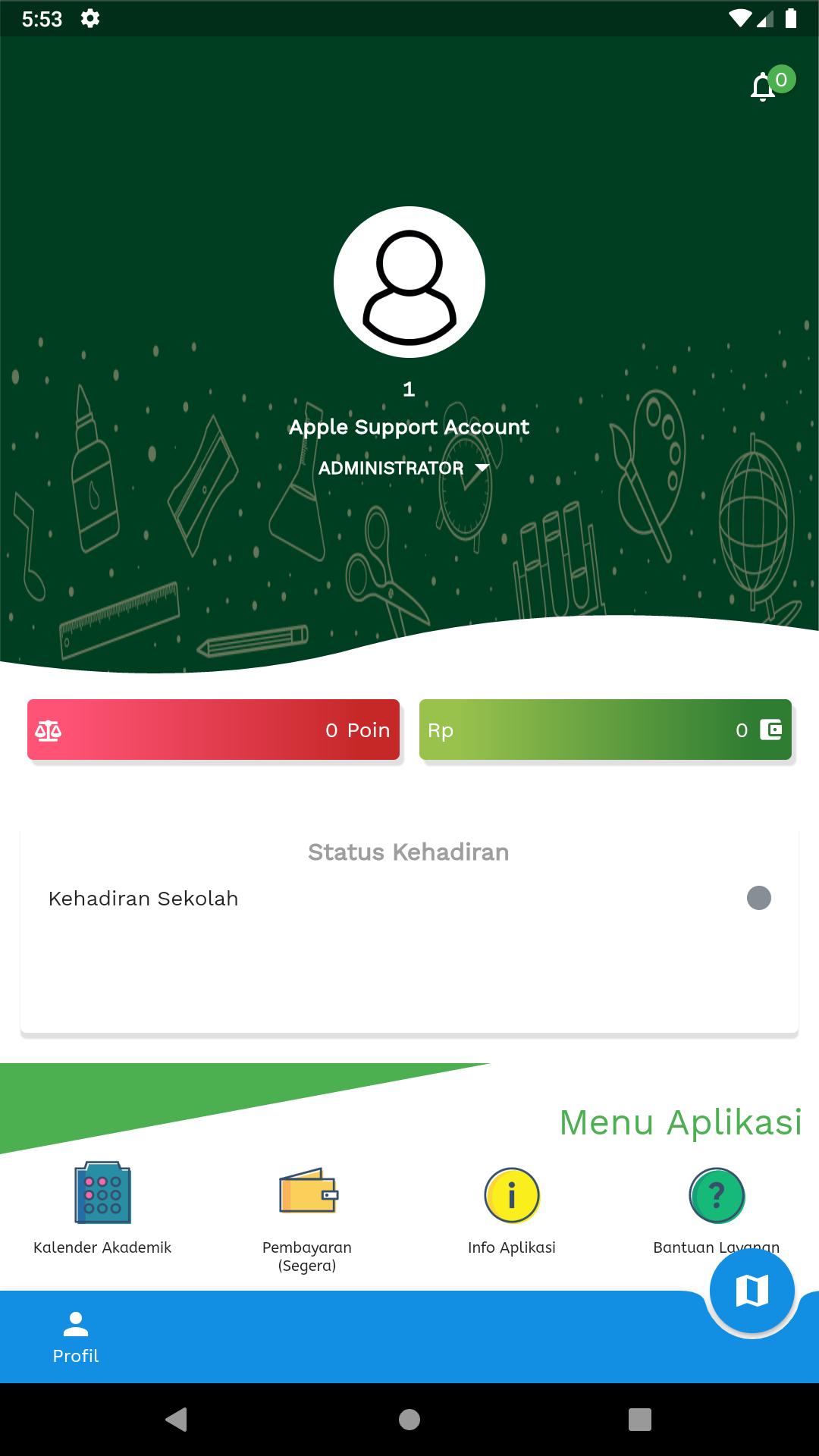 यह Adzkia हाई स्कूल आईटी स्मार्ट स्कूल आवेदन सभी Adzkia IT हाई स्कूल अकादमिक समुदाय के सदस्यों के लिए एक आवेदन है, जो प्रिंसिपल, शिक्षकों, गैर-शैक्षिक कार्मिक, छात्रों और अभिभावकों / अभिभावकों से शुरू होता है।