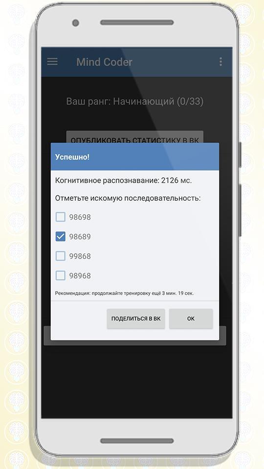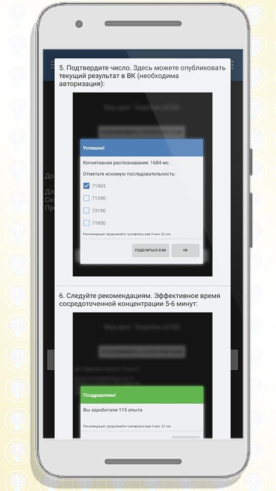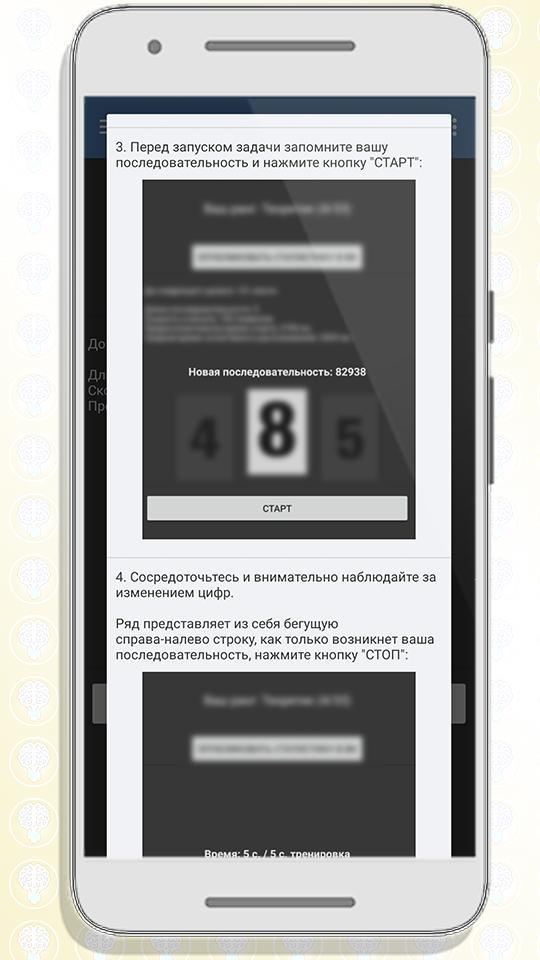 Смысл тренировок прост: вам предоставляется ряд цифр, которые необходимо запомнить и удерживать в памяти на протяжении выполнения задания, одновременно отслеживая изменение интерфейса и своевременно подтверждая распознанный ряд. На основе ваших действий программа выстраивает систему заданий, увеличивает скорость и количество цифр в ряде.