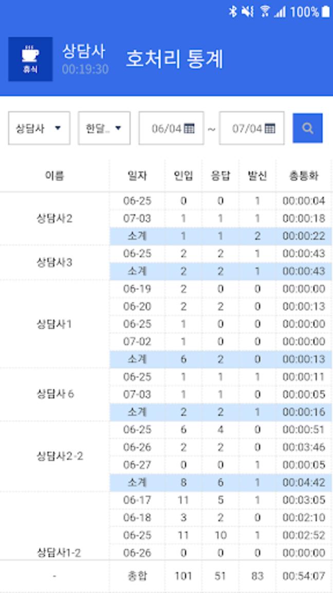 घंटे/दिन/सप्ताह/वर्ष के लिए आंकड़े विभिन्न रूपों में प्रदान किए जाते हैं, जैसे कॉल हैंडलिंग और परामर्श प्रबंधन।