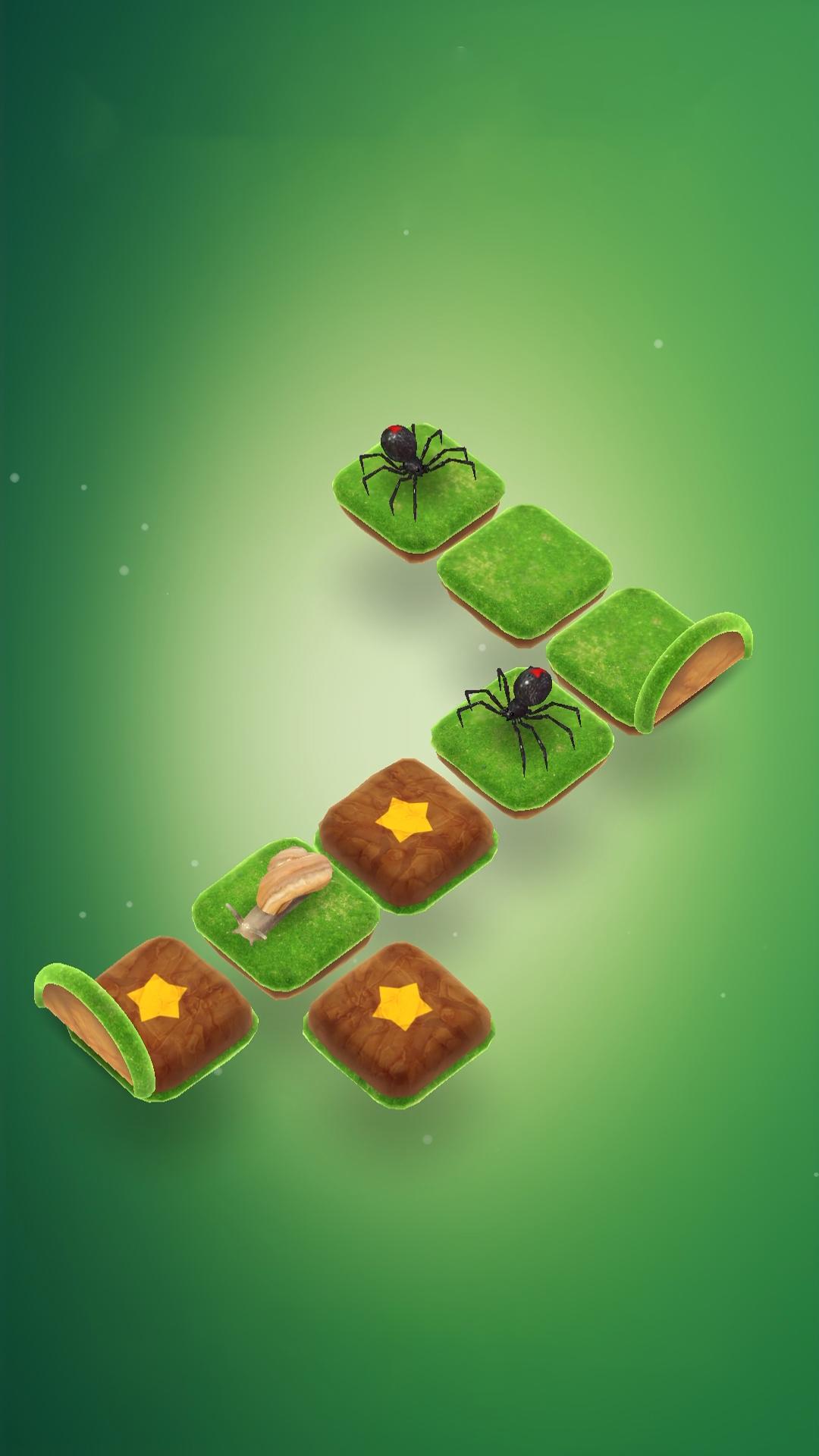 Swiping around to make the bugs move. There are several bugs in the puzzle, each bug has unique rule to move. A level is completed when all the bugs reach the brown ground.