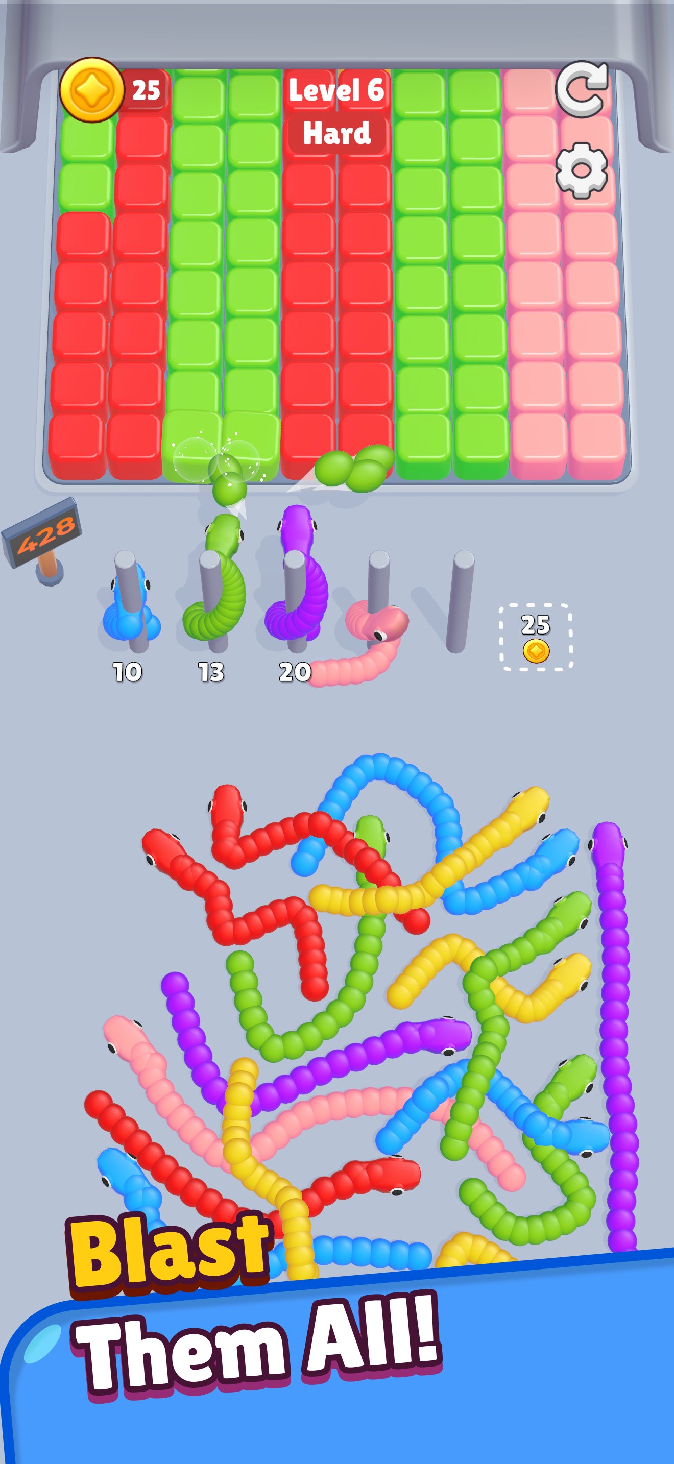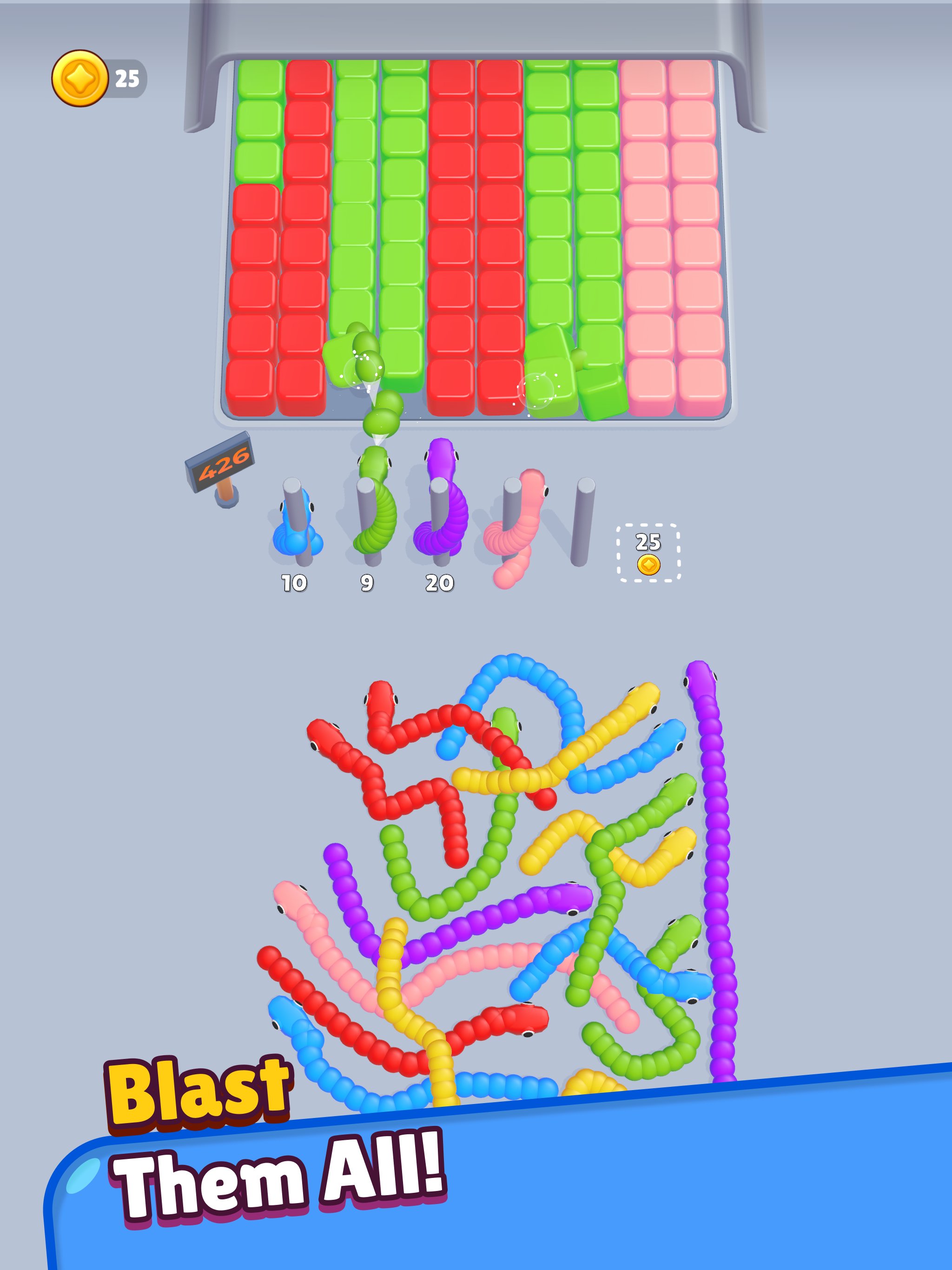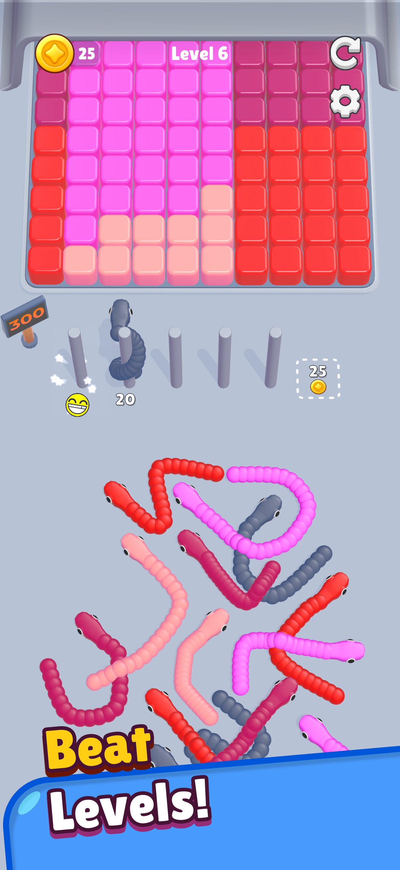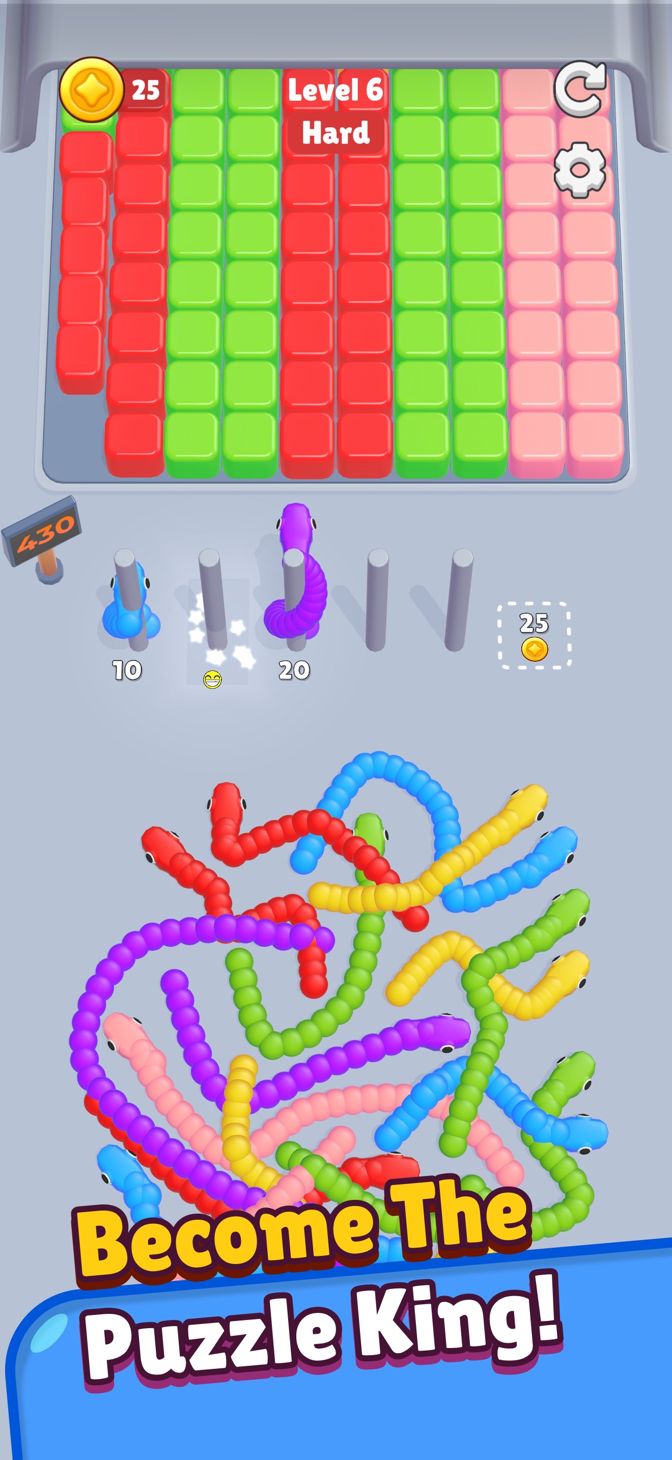 साँपों को स्थानांतरित करने और पहेलियों को सुलझाने के लिए आसान एक टैप गेमप्ले।