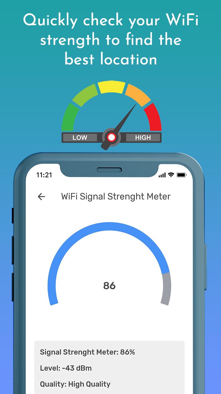 WiFi Signal Strength Meter app is a simple tool that allows you to view your current WiFi signal strength and detect WiFi Signal Strength around you in real time. This WiFi Analyzer is useful in finding good areas of WiFi connectivity in your WiFi network and also can quickly check your WiFi strength to find the best location.