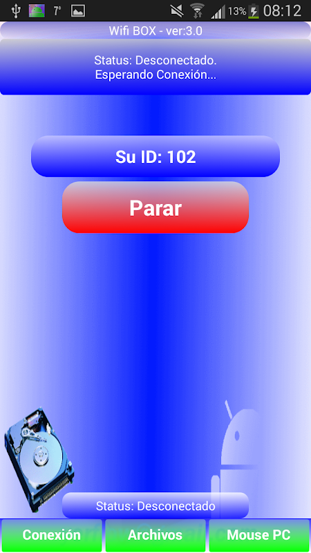 2) un dispositivo con la opción "Esperar Conexión" y luego el botón iniciar y recuerde el número ID que muestra la pantalla.