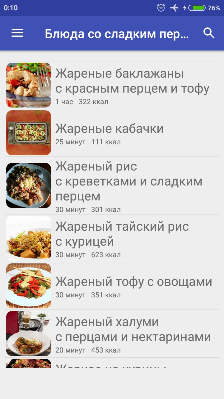 - Рецепты из различных продуктов: блюда из мяса, блюда из рыбы, блюда из тофу и теста (выпечка), рецепты из птицы и курицы, блюда из молочных продуктов