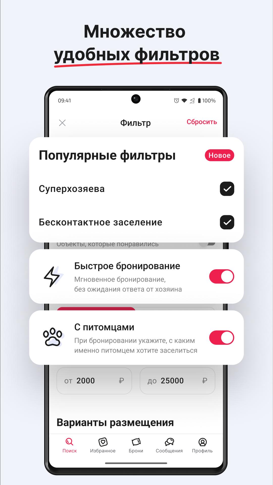 Guarda foto e recensioni reali quando cerchi un alloggio per le vacanze o per il lavoro. Se hai domande durante l'affitto di un appartamento, scrivi al proprietario direttamente nell'applicazione. Dopo la prenotazione potrete chiamarlo telefonicamente.