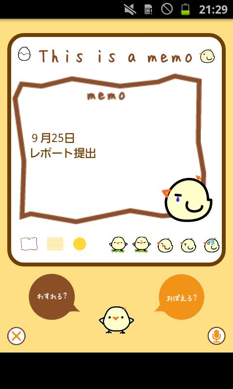 Pulcini, una parola nella schermata inizialeQuesto è un tipo di widget di memo da ricordare.