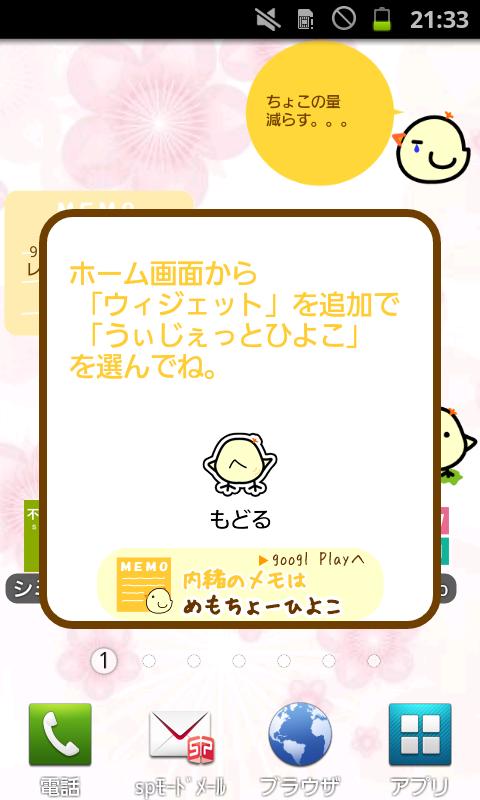 ヒヨコをホーム画面におじゃまさせてあげて下さい。