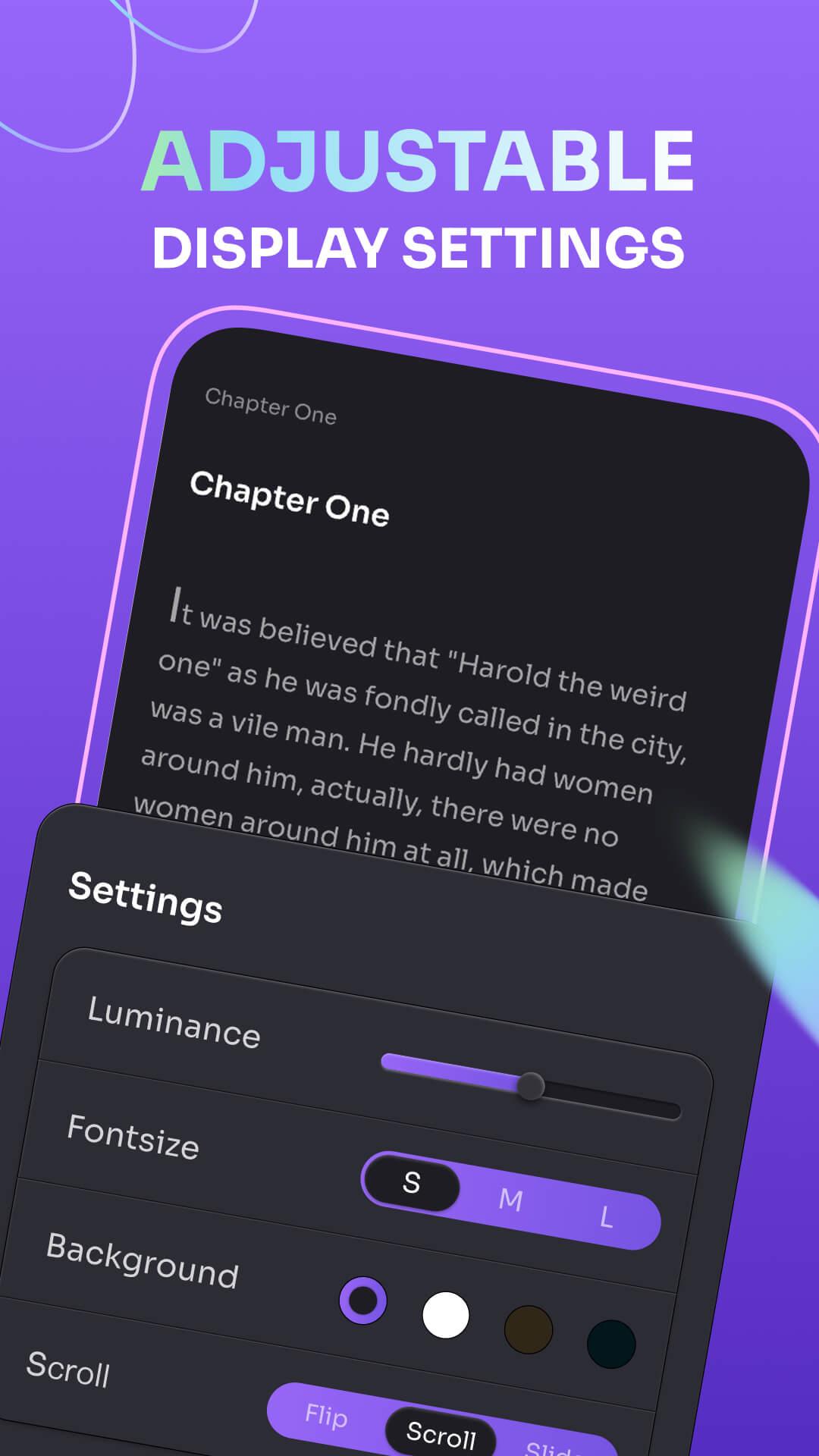 Personalizza il tuo viaggio di lettura con la funzionalità della libreria individuale, che ti consente di curare una raccolta delle tue letture preferite. Che tu sia in viaggio o ti rilassi a casa, le nostre opzioni di lettura personalizzabili garantiscono un'esperienza confortevole, dandoti il controllo sullo stile, sulle dimensioni e sui colori dello sfondo del carattere.