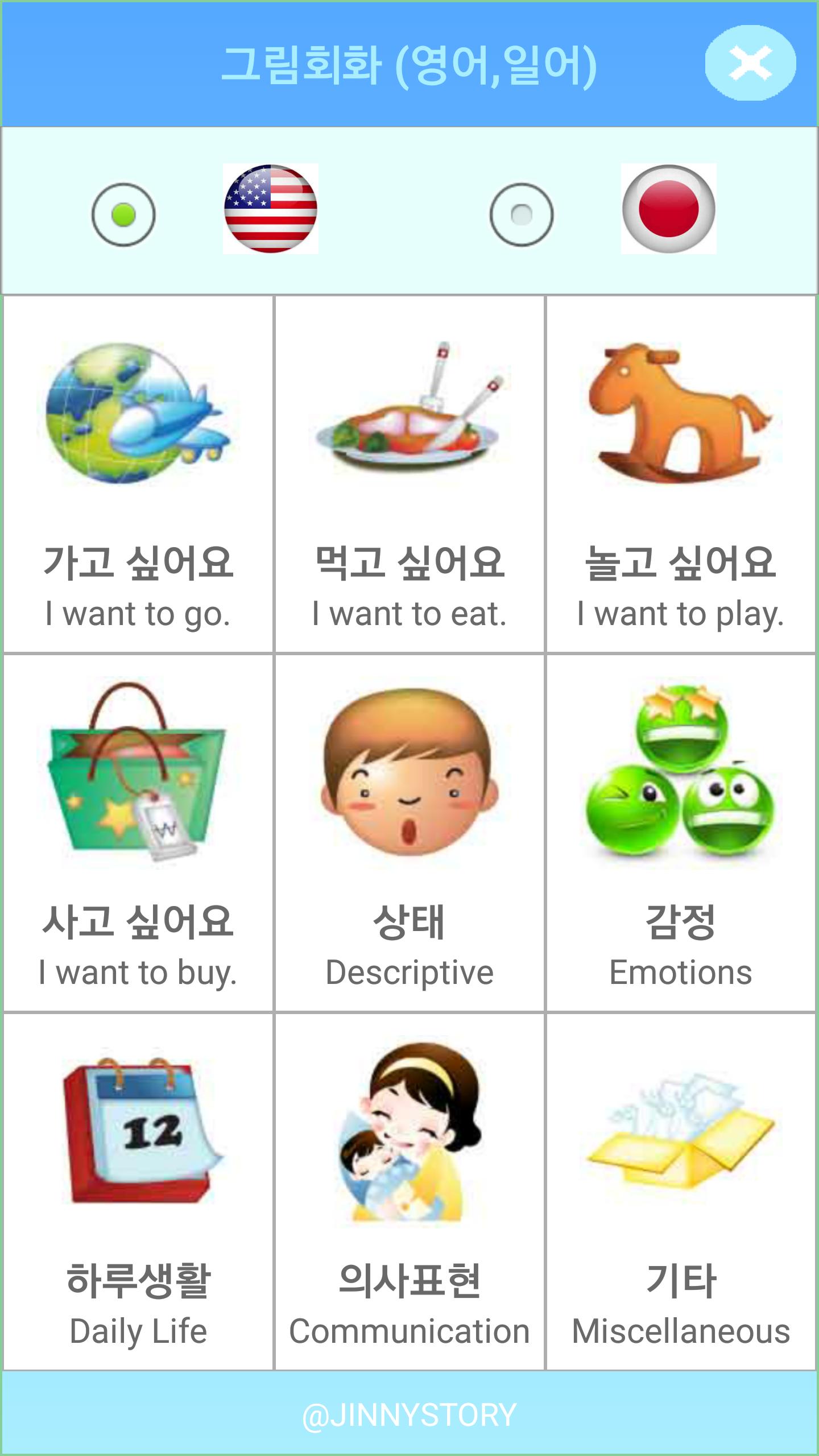 "Picture Conversation (inglese, giapponese)" è un modo semplice per imparare l'inglese e il giapponese attraverso le immagini. Quando tocchi l'immagine, la frase sarà pronunciata da un madrelingua inglese o giapponese.