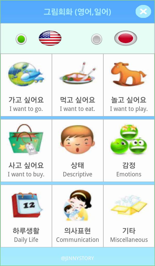 영어 또는 일어를 선택할수 있습니다. 외국어 공부에 어려움을 겪고 있는 분을 위해 손쉽게 2개 외국어를 마스터 할 수 있는 완벽한 의사소통 학습 솔루션입니다.
