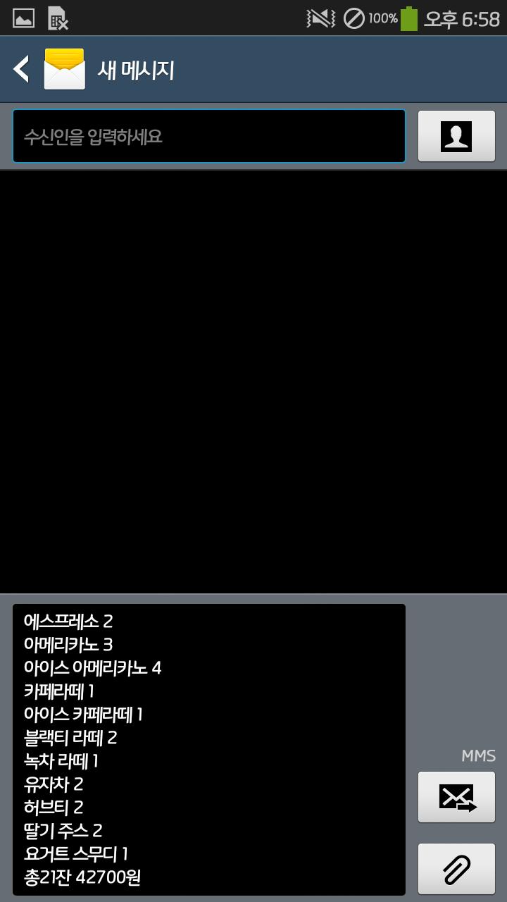 - 주문 내역, 수량, 가격을 SMS로 발송할 수 있습니다.