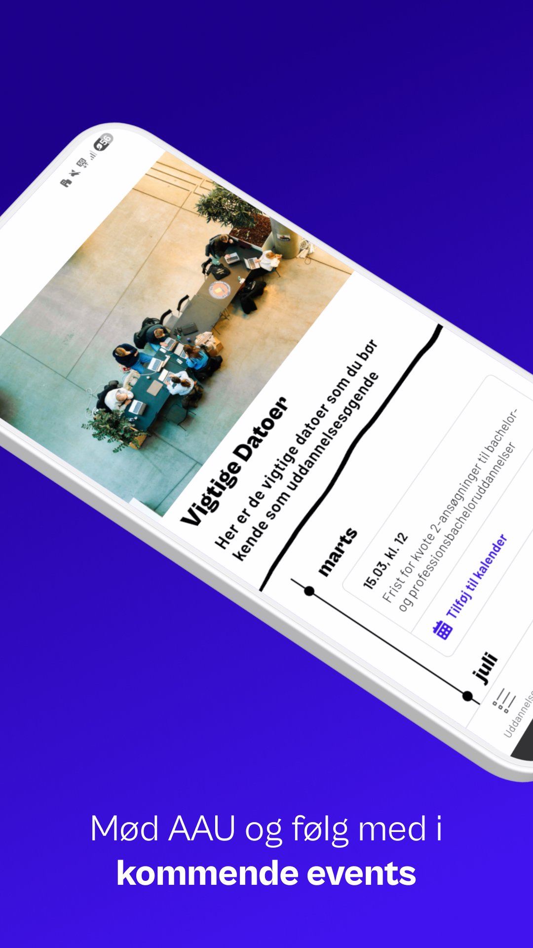 L'app AAU Guide fornisce una panoramica di tutti i programmi di laurea e master presso l'Università di Aalborg. Ordina per interessi, città, lingua o tipo di programma e gestisci facilmente un elenco dei tuoi programmi preferiti.