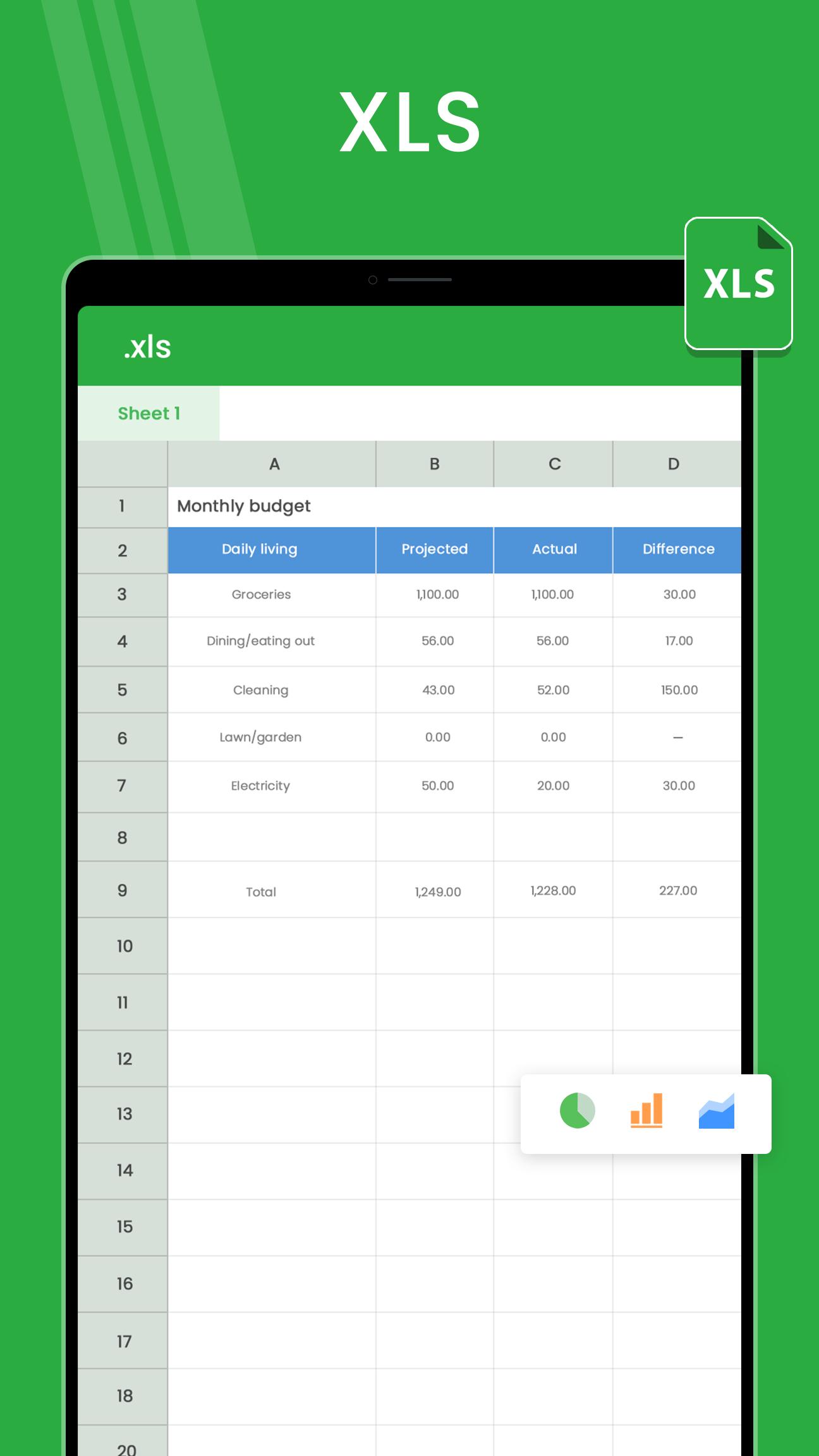 Il lettore XLSX può leggere e aprire tutti i file XLSX, XLS, entrambi i formati sono supportati. Uno strumento adatto per gestire i report XLS sul tuo telefono.