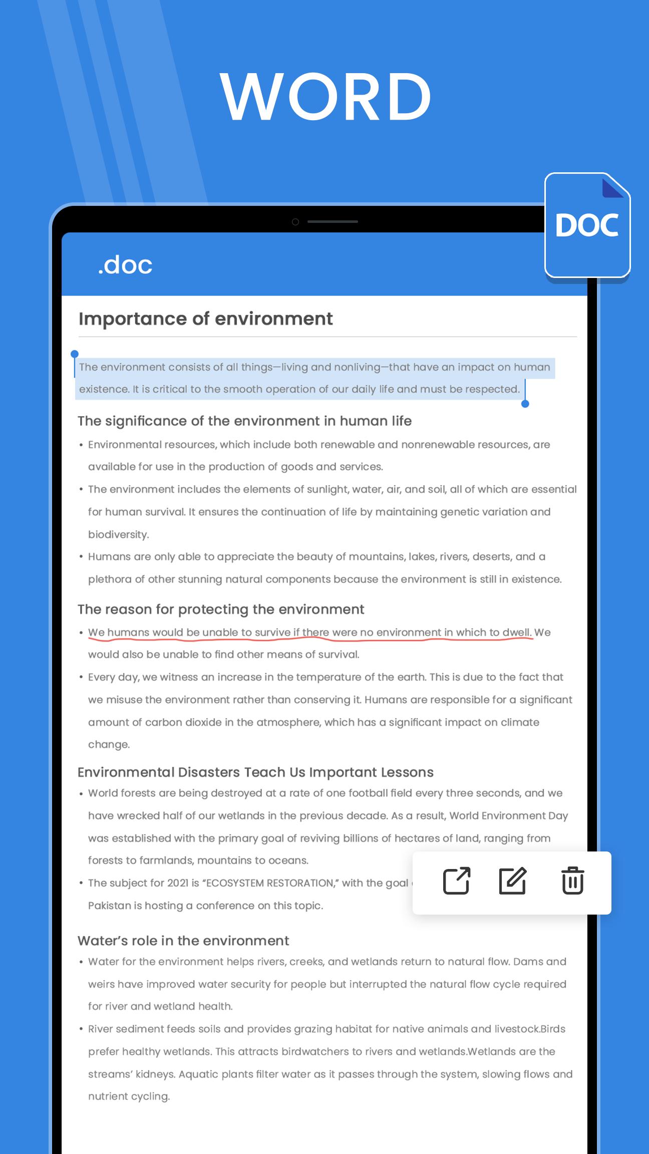 se sei uno studente o un professionista, tutti hanno a che fare con vari documenti ogni giorno, questo visualizzatore e lettore PDF ti semplifica la vita, questa app gestirà tutti i file doc in un'unica app. Non devi passare da un'app all'altra o gestire file che non si aprono. Goditi un'esperienza fluida di lettura e visualizzazione di tutti i documenti, sempre e ovunque.