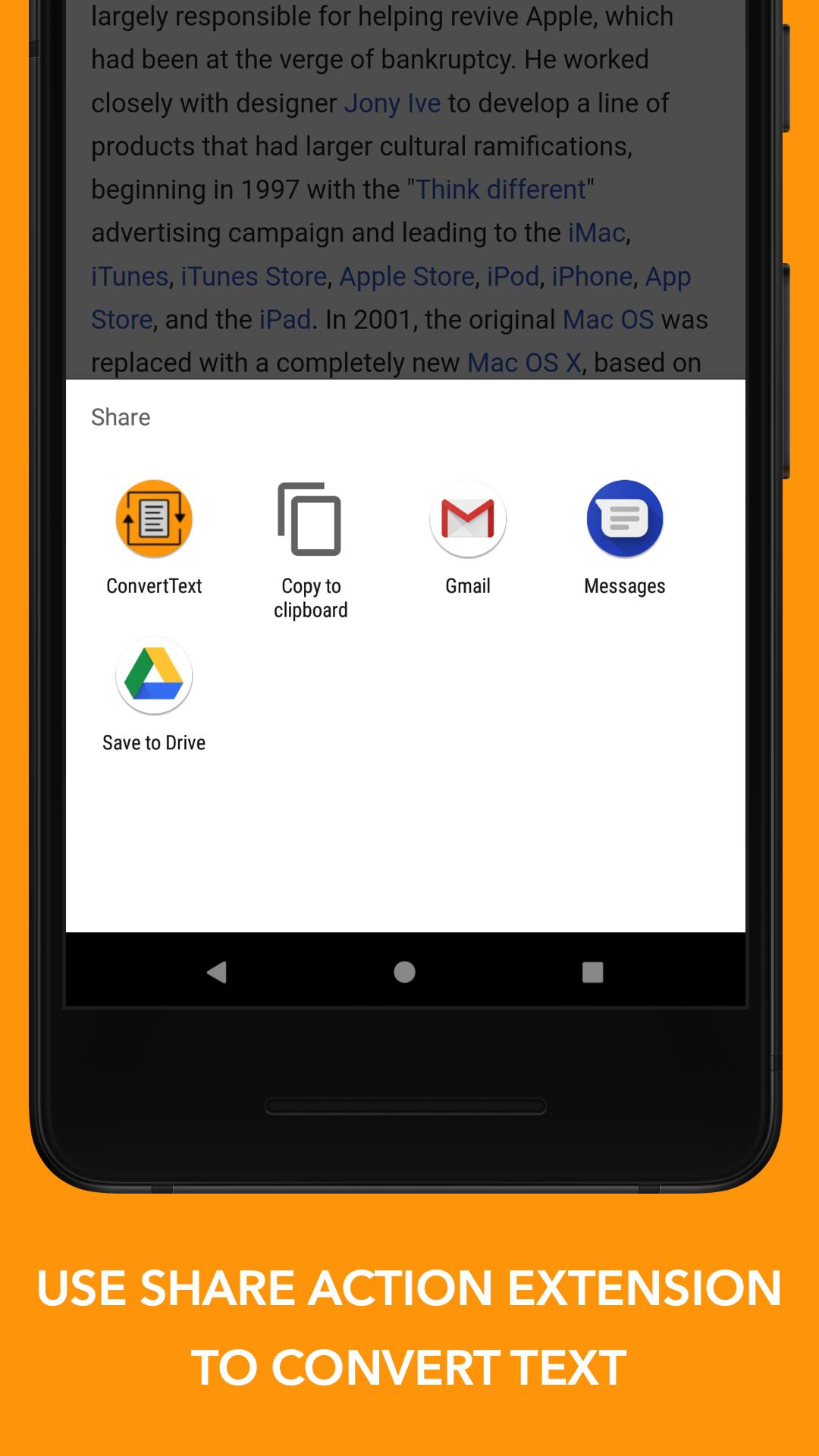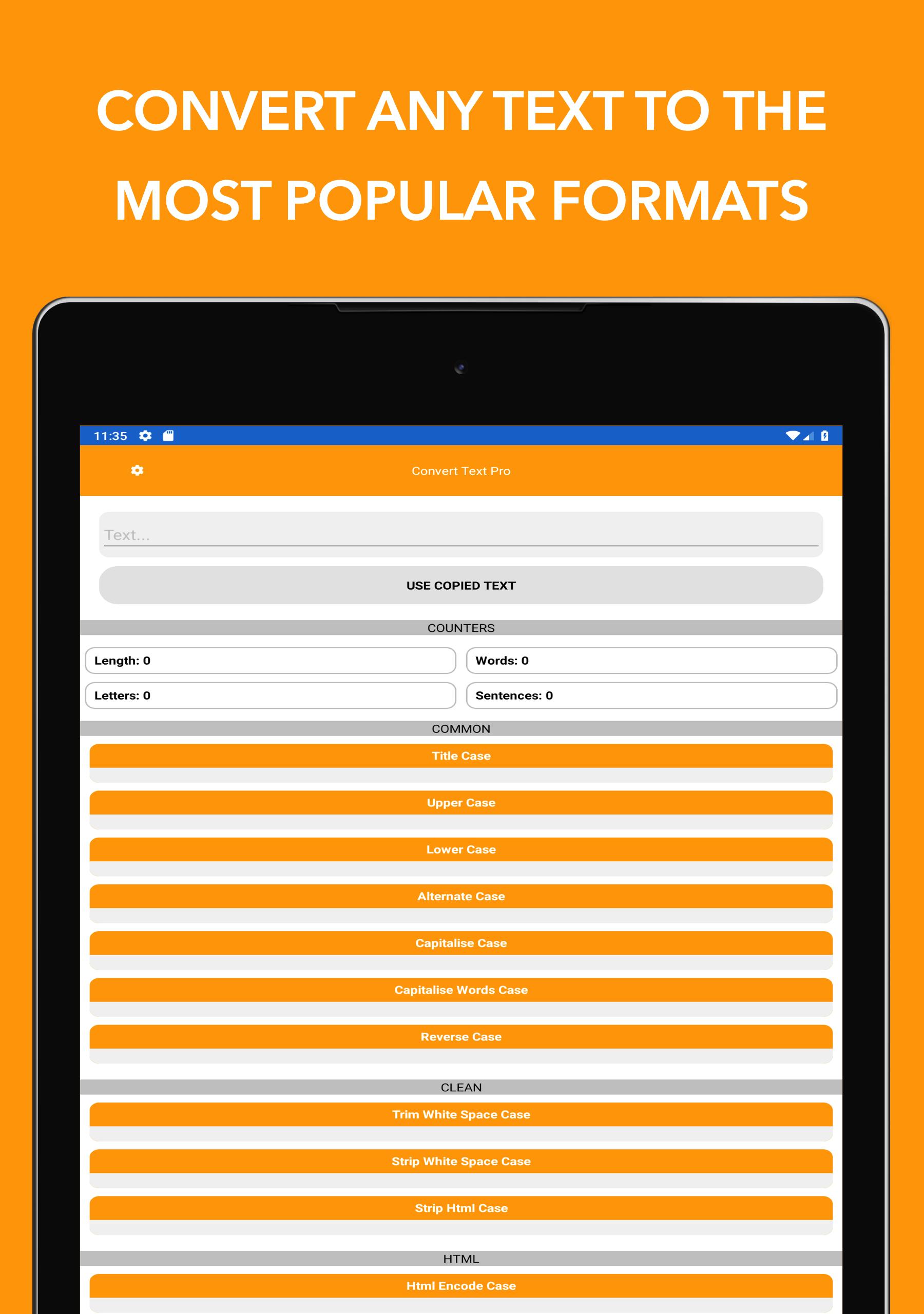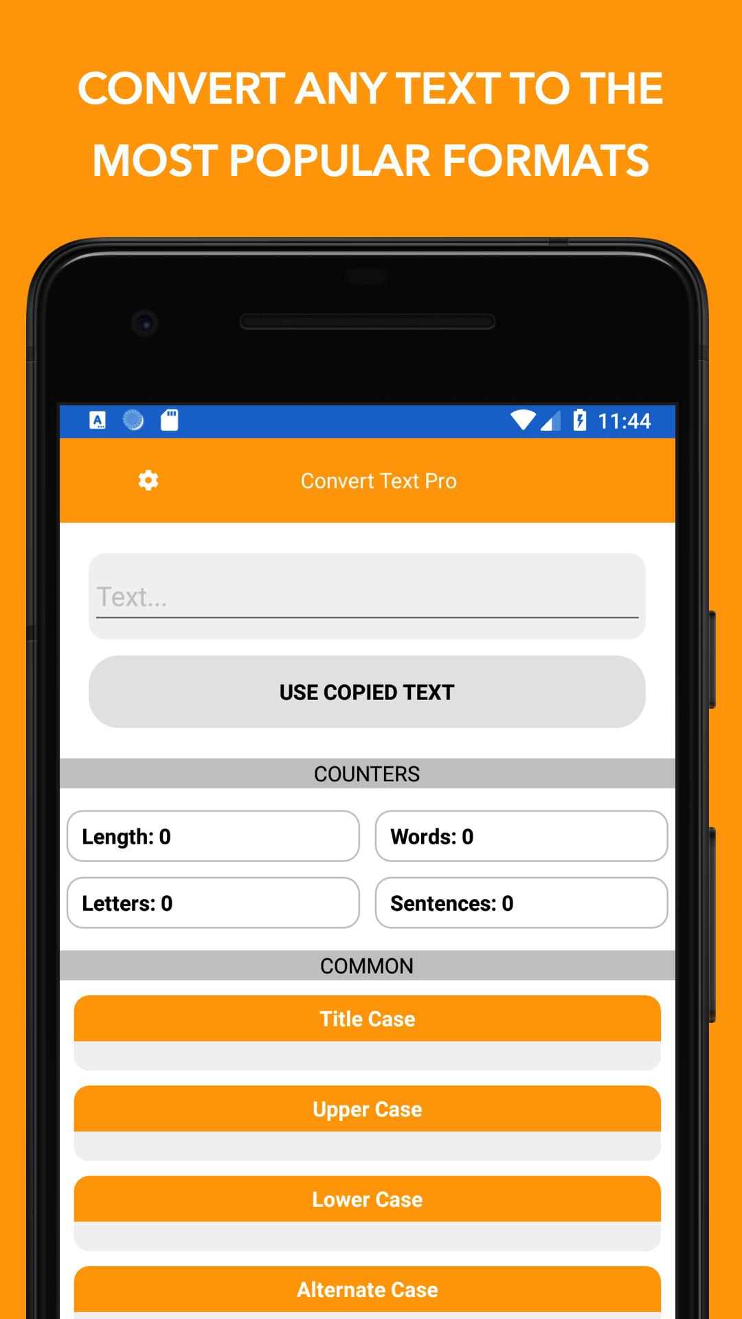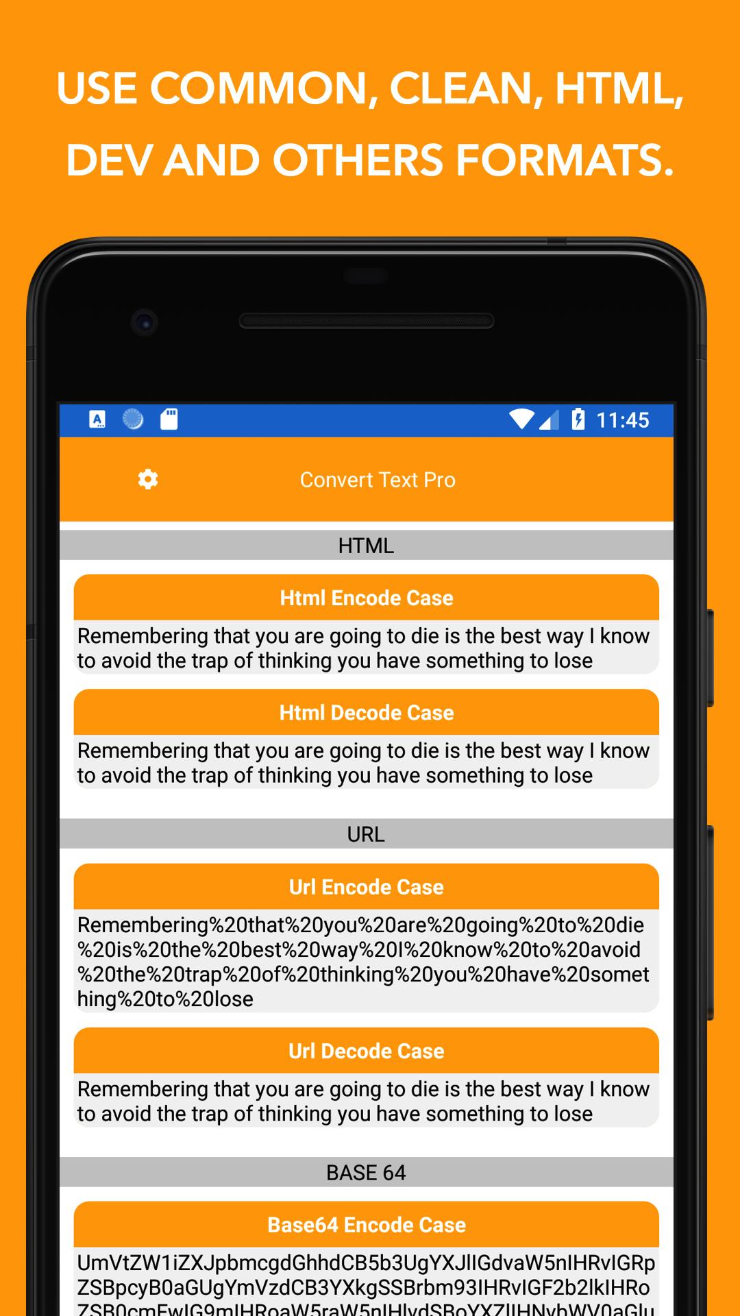 Convert Text ti consente di convertire qualsiasi testo nei formati più diffusi.