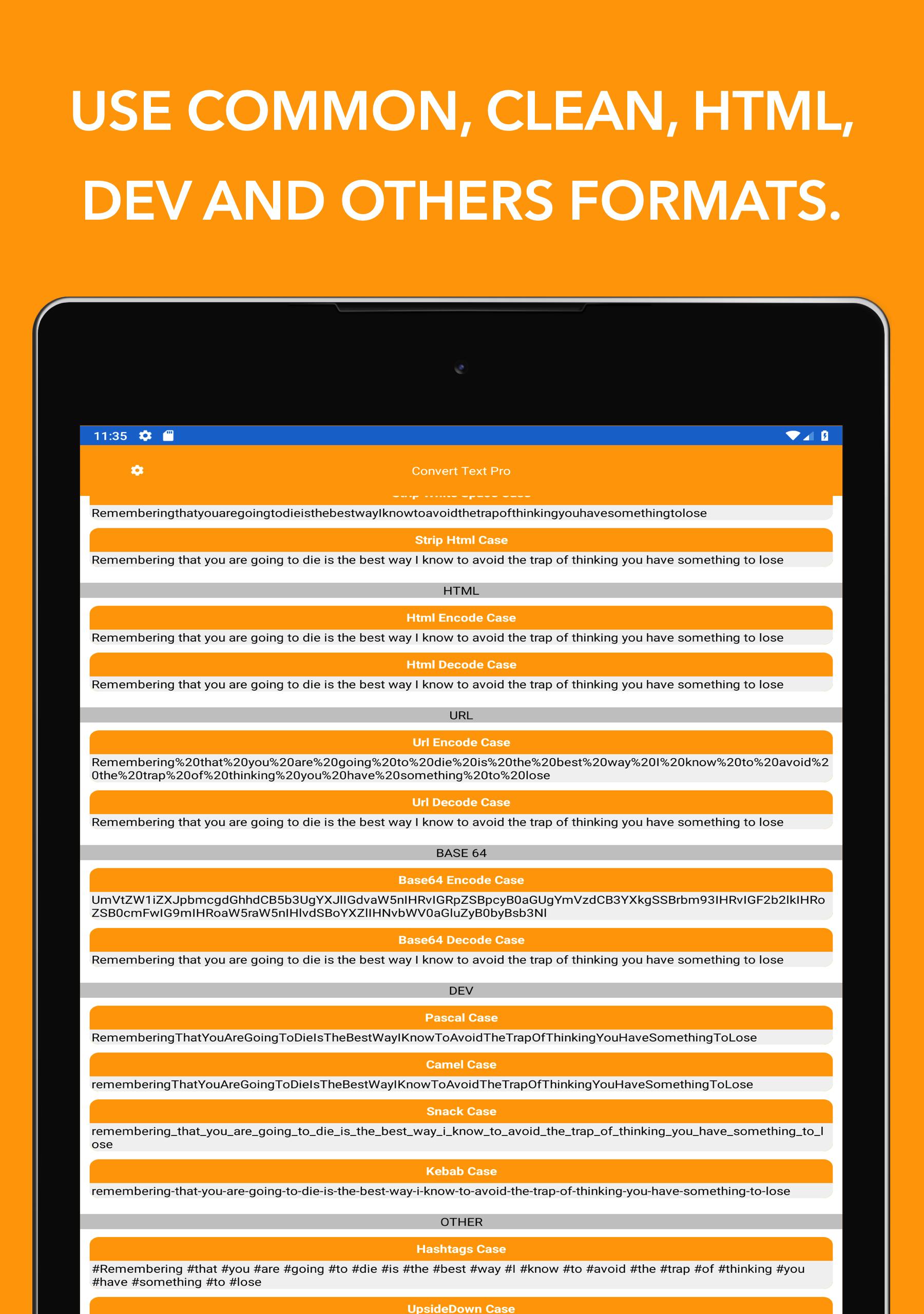 Convert Text consente di convertire qualsiasi testo nei formati più diffusi.