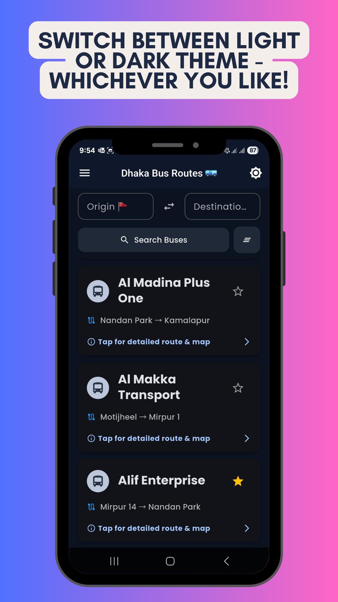 Scarica da Google Play: https://play.google.com/store/apps/details?id=com.rongdhonuapps.dhaka_bus_route