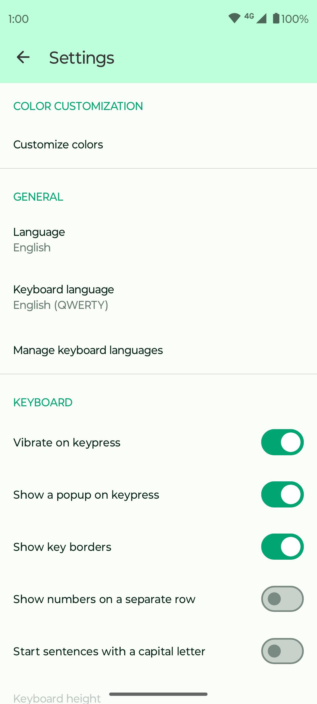 Personalizza la tua esperienza di digitazione attivando o disattivando le vibrazioni, i popup alla pressione dei tasti e selezionando la lingua preferita dall'elenco di quelle supportate. Personalizza le impostazioni della tastiera in base alle tue preferenze.