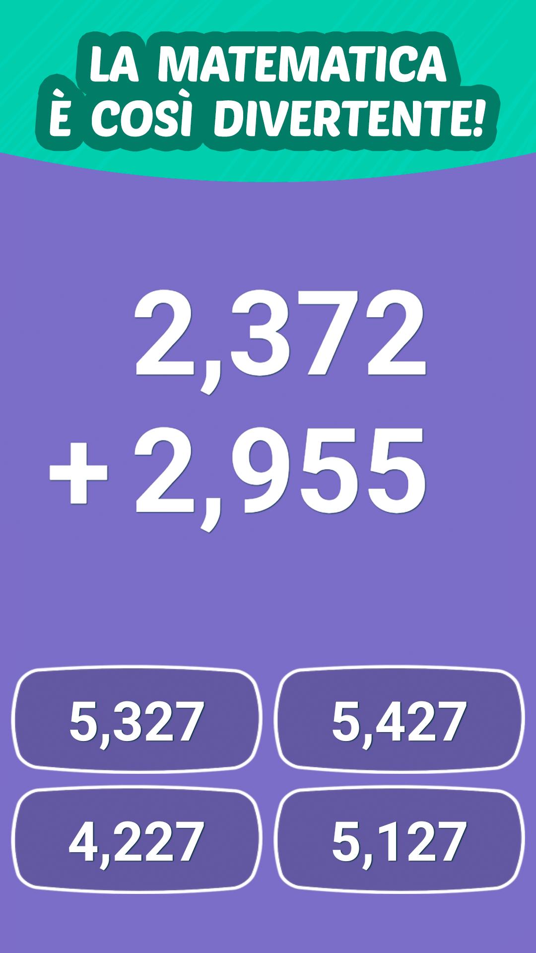 Scopri come puoi imparare la matematica giocando con i nostri giochi di matematica. Somma e sottrazione, moltiplicazione e divisione, radice quadrata, percentuali e decimali. Ottieni rapidi calcoli mentali e sfida la tua mente con milioni di esercizi matematici. Risolvere operazioni matematiche è così divertente!