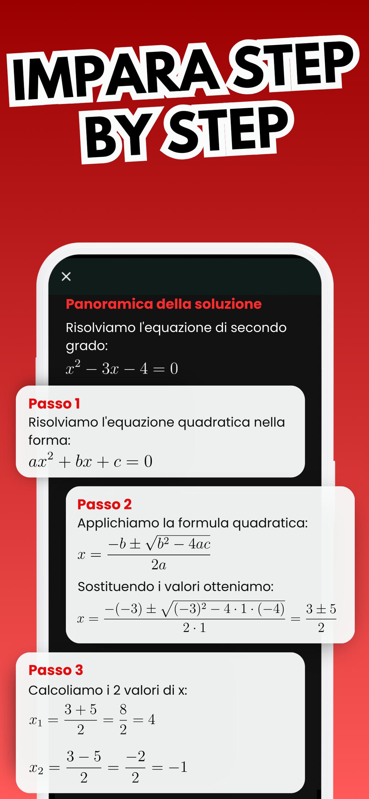 • Risolvi problemi matematici istantaneamente con la nostra tecnologia avanzata