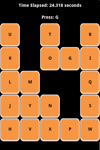 In this action game you need to press alphabets from A to Y in order. But there is a twist. It won't be that easy. Every time you press a correct alphabet, the other alphabets will change their position! Try to complete the game under a minute and you can see your time. The game requires you to have fast reactions and quick eye movement.Last updated on Sep 21, 2016