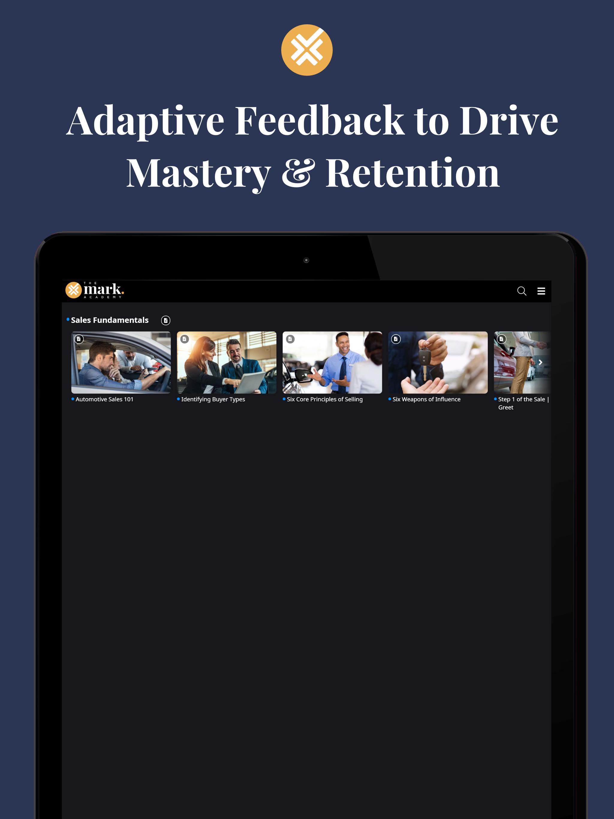 As a learner, simply answer the question, indicate how confident you are in your answer, and learn from your answers. The Mark Academy improves the retention of subject materials over time and is an excellent tool for Retail Automotive training. The Mark Academy’s proprietary algorithm calculates each learner’s individual learning/forgetting curve, reintroducing content over time to improve retention.