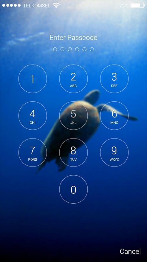 by entering the 6 digit number as the opening password, which is in the settings menu, which is in the "Pass Code" column. Then select the turtle's wallpaper available in the "Change Wallpaper" column.