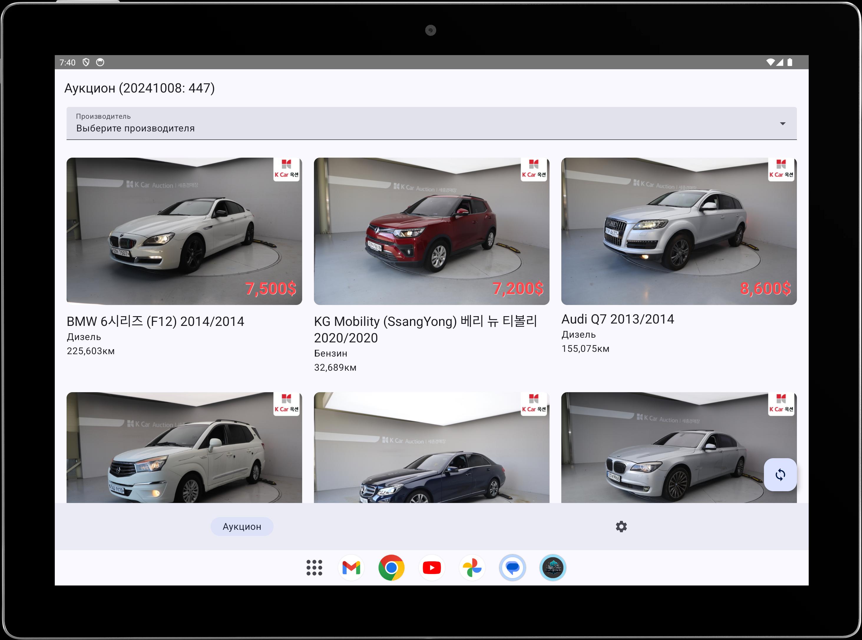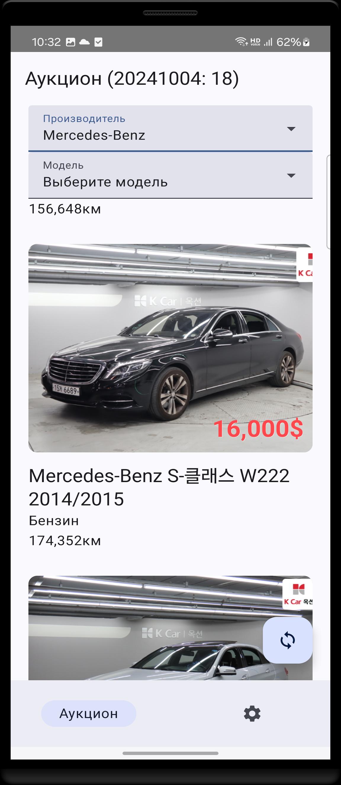 - Просмотр аукционных мазин из Кореи