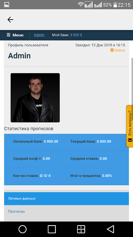 У вас будет возможность вести свою историю ставок с подробной статистикой в виде среднего размера ставки и коэф, а также у вас будет график вашей прибыли или убытков. К тому же вы сможете записывать свой мысли по поводу сделанной вами ставки – это позволит вам видеть свой плюсы и минусы выбранной ставки после ее расчета .