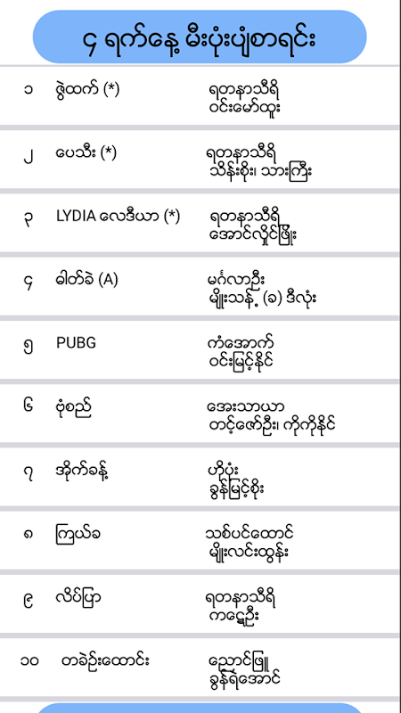 ၂၀၁၉ တန္ေဆာင္တိုင္ မီးပံုးပ်ံစာရင္း Android Application