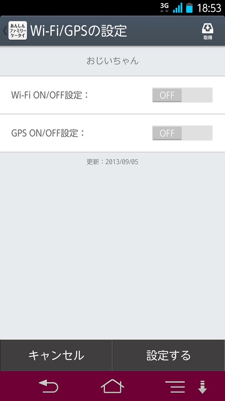 ・あんしんファミリーケータイの設定変更等をするためには、対象のあんしんファミリーケータイにおいて、本アプリケーションご利用者からの設定変更等が許可されるように事前に設定されている必要があります。