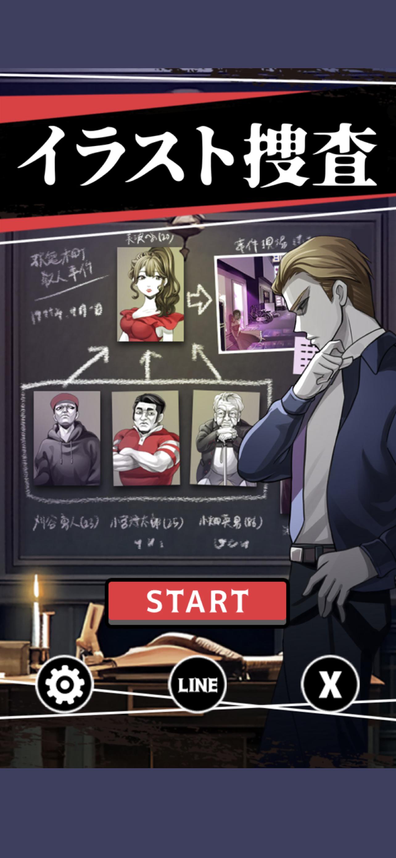 「イラスト捜査」は、謎解き・推理・探偵・捜査・ミステリー・サスペンスを融合させた無料アプリです。