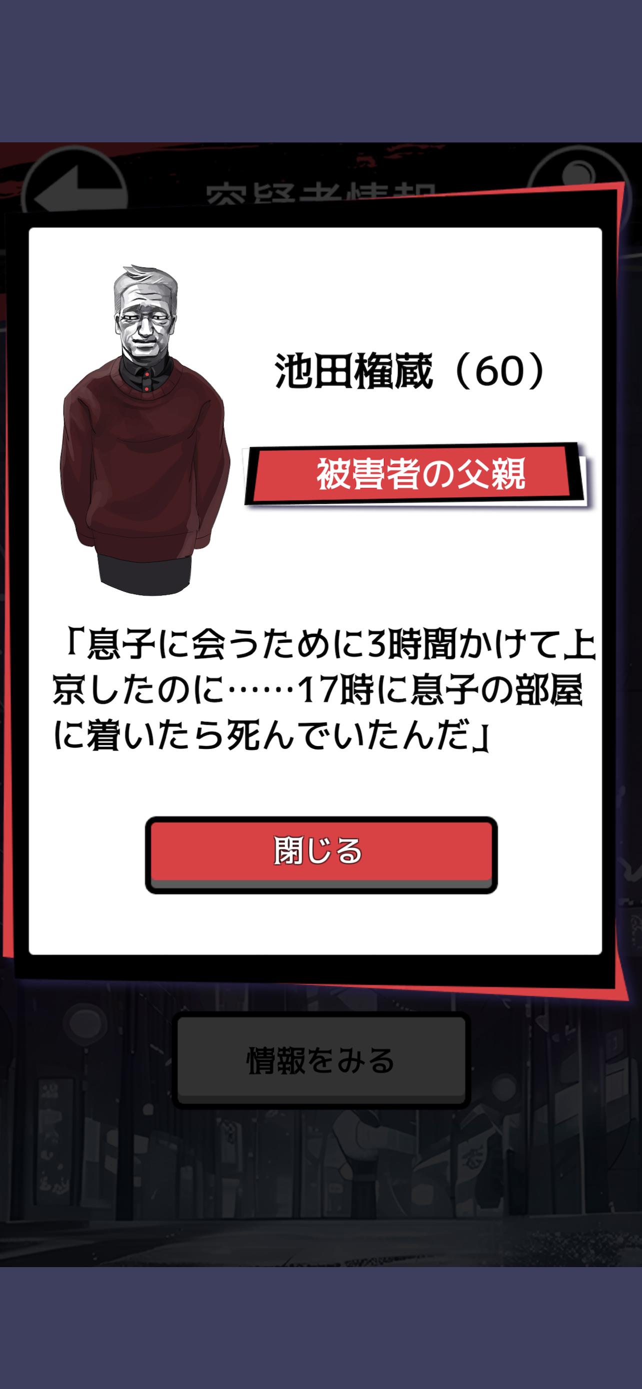 無料で遊べる謎解き推理捜査ゲーム!イラストから真相を暴き、探偵気分で事件解決。スリル満点のサスペンス要素と頭脳戦を楽しもう!探偵事件を捜査せよ。スリル満点謎解き
