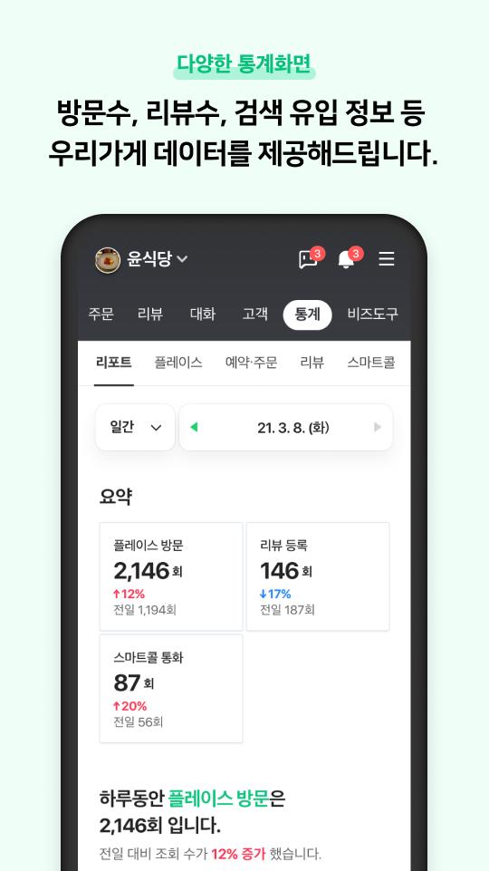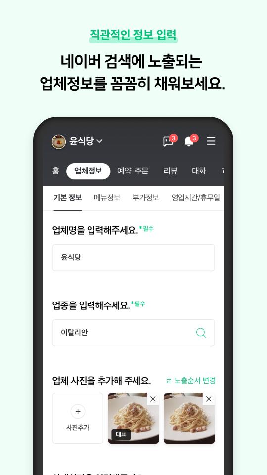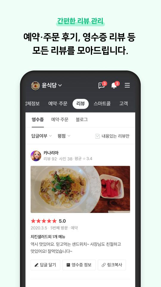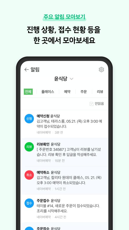店舗情報の変更から予約、注文、レビューまで、NAVER Smartplaceアプリで簡単に確認できます。