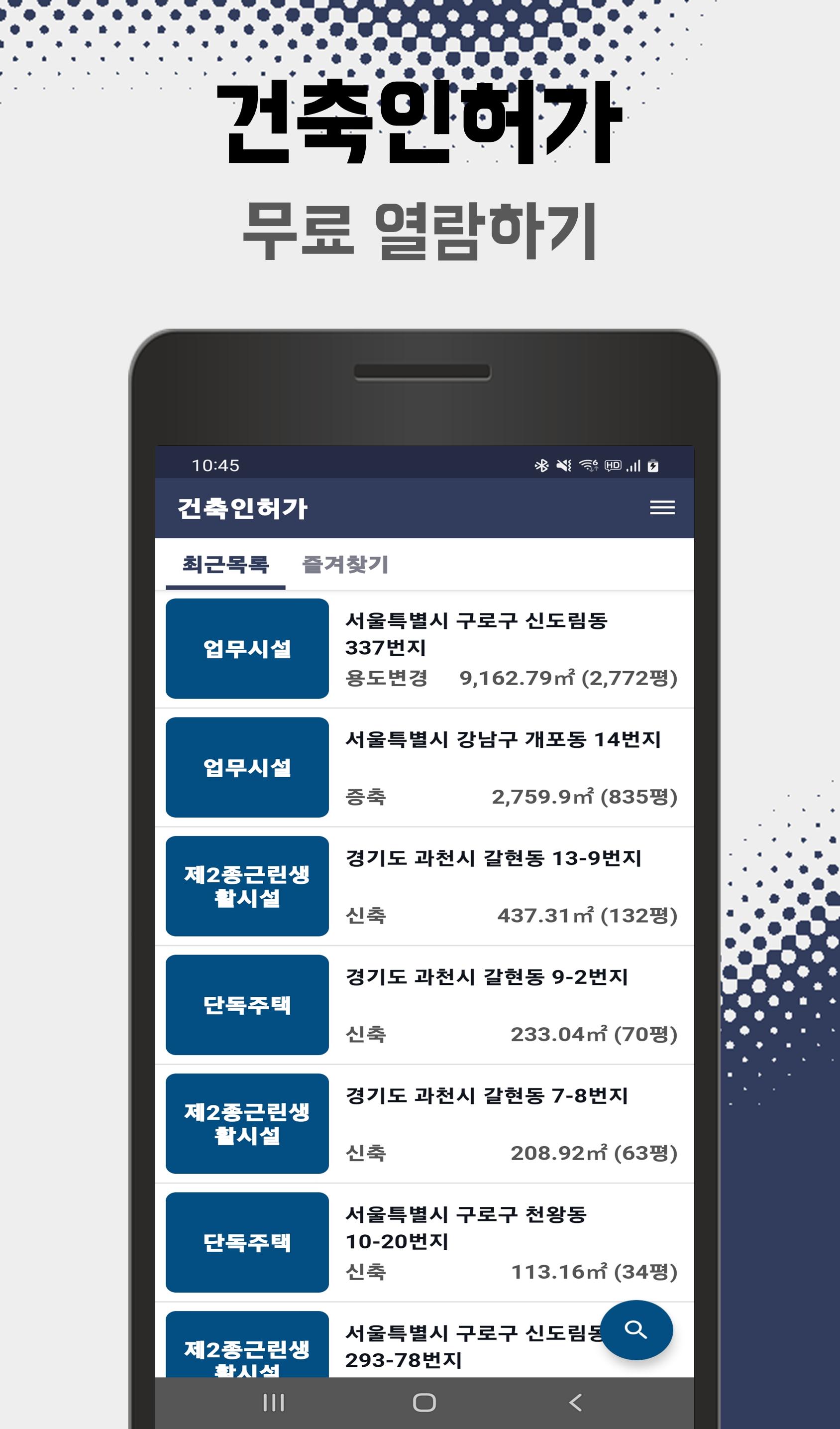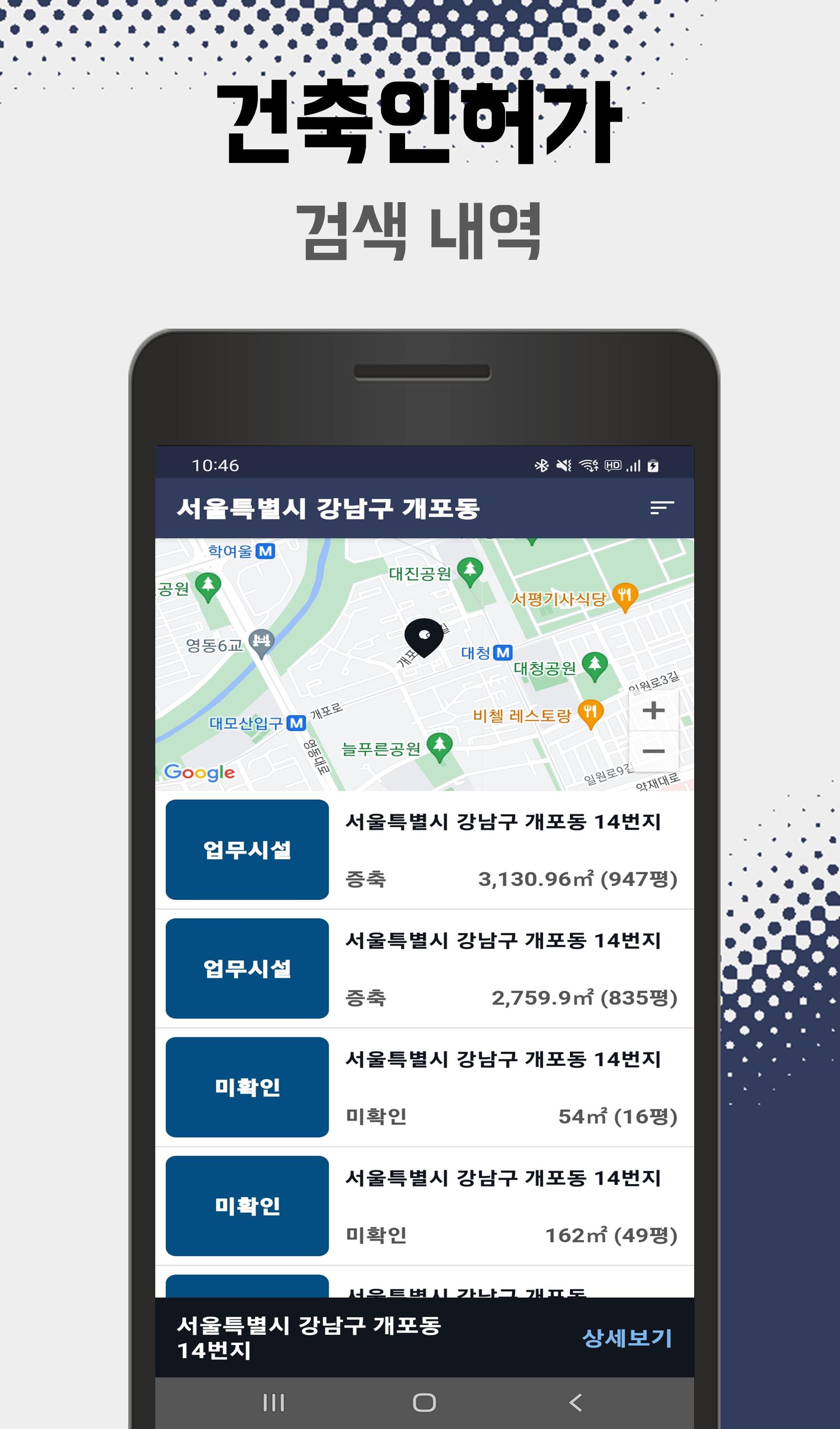 国土交通部建築HUBが提供する建築許可情報サービスと直接連動し、最も正確で信頼できる建築許可の現状をリアルタイムで受け取ることができます。信頼できるデータに基づいて安心して建築情報を確認してください。