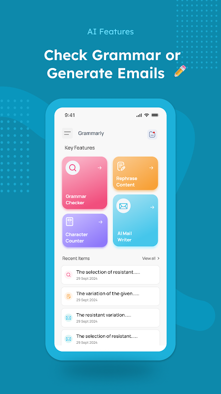 文法チェッカー - AI アシスタントは、ライティング スキルを強化し、コンテンツ作成プロセスを変革するように設計された、究極の AI ライティング ツールです。エッセイの下書き、プロフェッショナルなメールの作成、魅力的なストーリーの作成のいずれの場合でも、このアプリは AI で強化された執筆支援を提供し、エラーのない洗練された魅力的なコンテンツを作成するのに役立ちます。このアプリは、文法の修正からクリエイティブなライティングまで、AI オーサリング、コンテンツのドラフトなどの強力な機能を提供します。