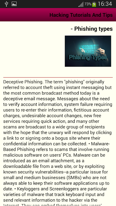 チュートリアルをハッキングやヒントは、専門家のチュートリアルと段階的にハッキングを学ぶために初心者のためのアプリケーションであり、それは様々なハッキング技術を説明し、「ハッキングチュートリアルとヒントは、」あなたが学び、知ることができ、このアプリケーションの助けを借りて、あなたのハッキングや技術の知識を広げますものをハッキングやハッカー潜在的な脅威を避けるについてのすべては、ハッキングチュートリアルとヒントアプリケーションは、それぞれの定義とあなたがすべての脅威のための知識を獲得し、ハッカーの攻撃を防ぐことができます世界全体のセキュリティ内のすべての脅威を、含まれています。