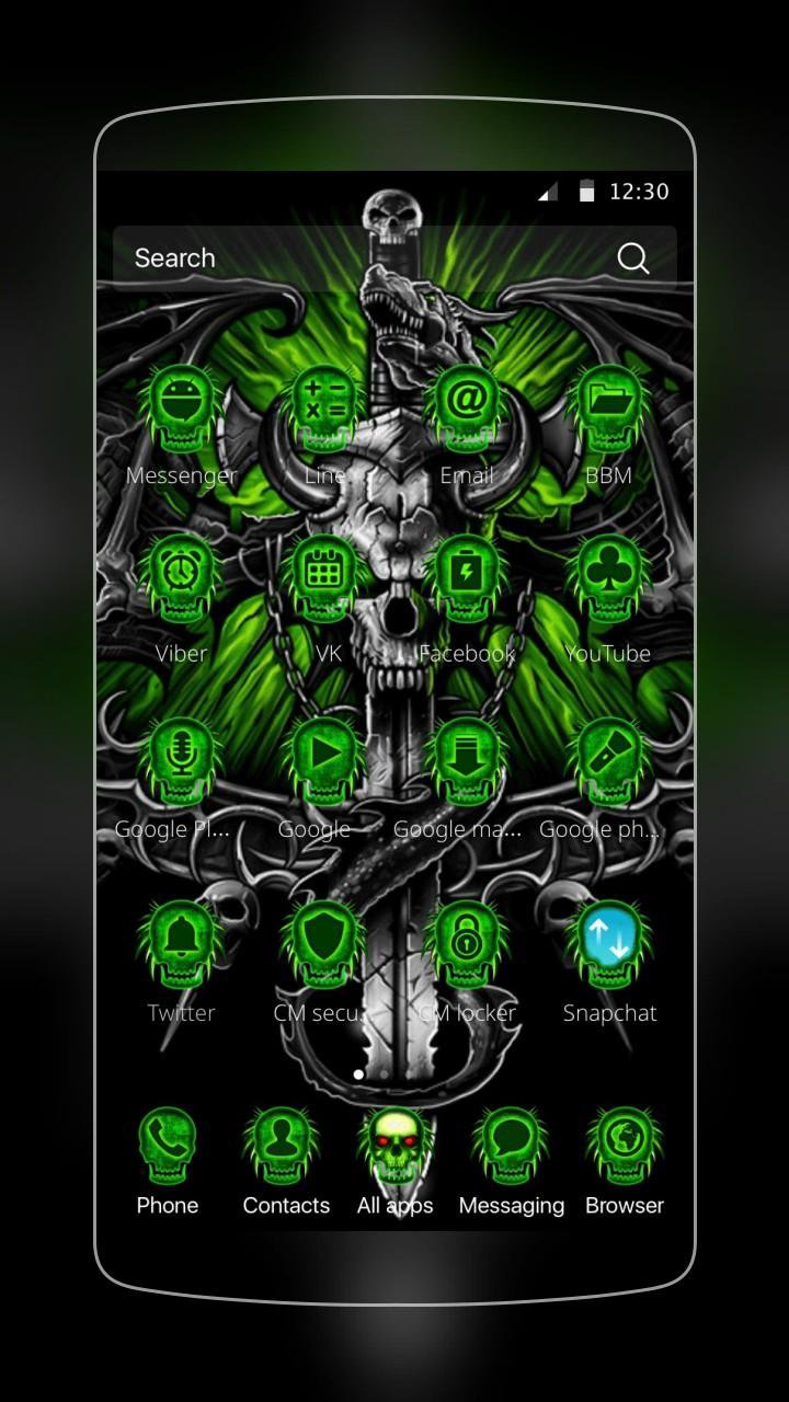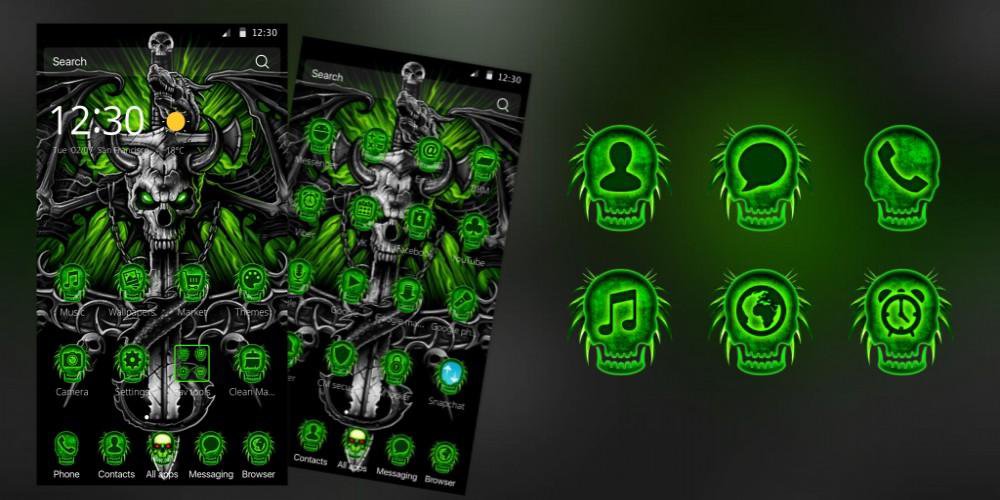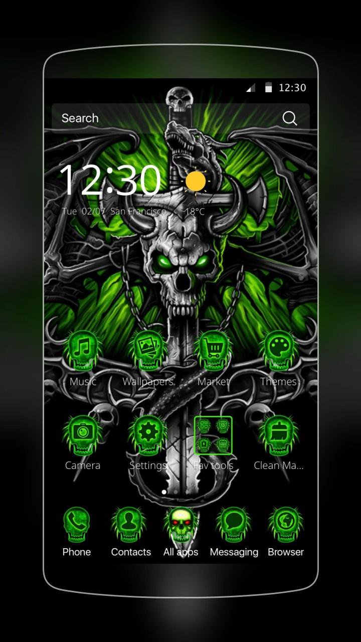 地獄の頭蓋骨の剣 3Dテーマのアプリアイコンパックは、あなたが使ったことのない新しい携帯電話を提供します