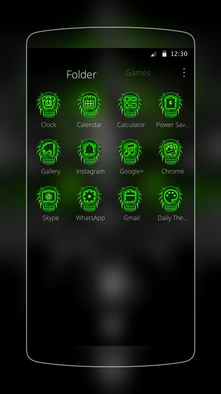 地獄の頭蓋骨の剣テーマには、スクリーンとフォルダの切り替えと、エレガントでシンプルな3Dスクリーンナビゲーションで世界をリードする3Dトランジション効果があります。